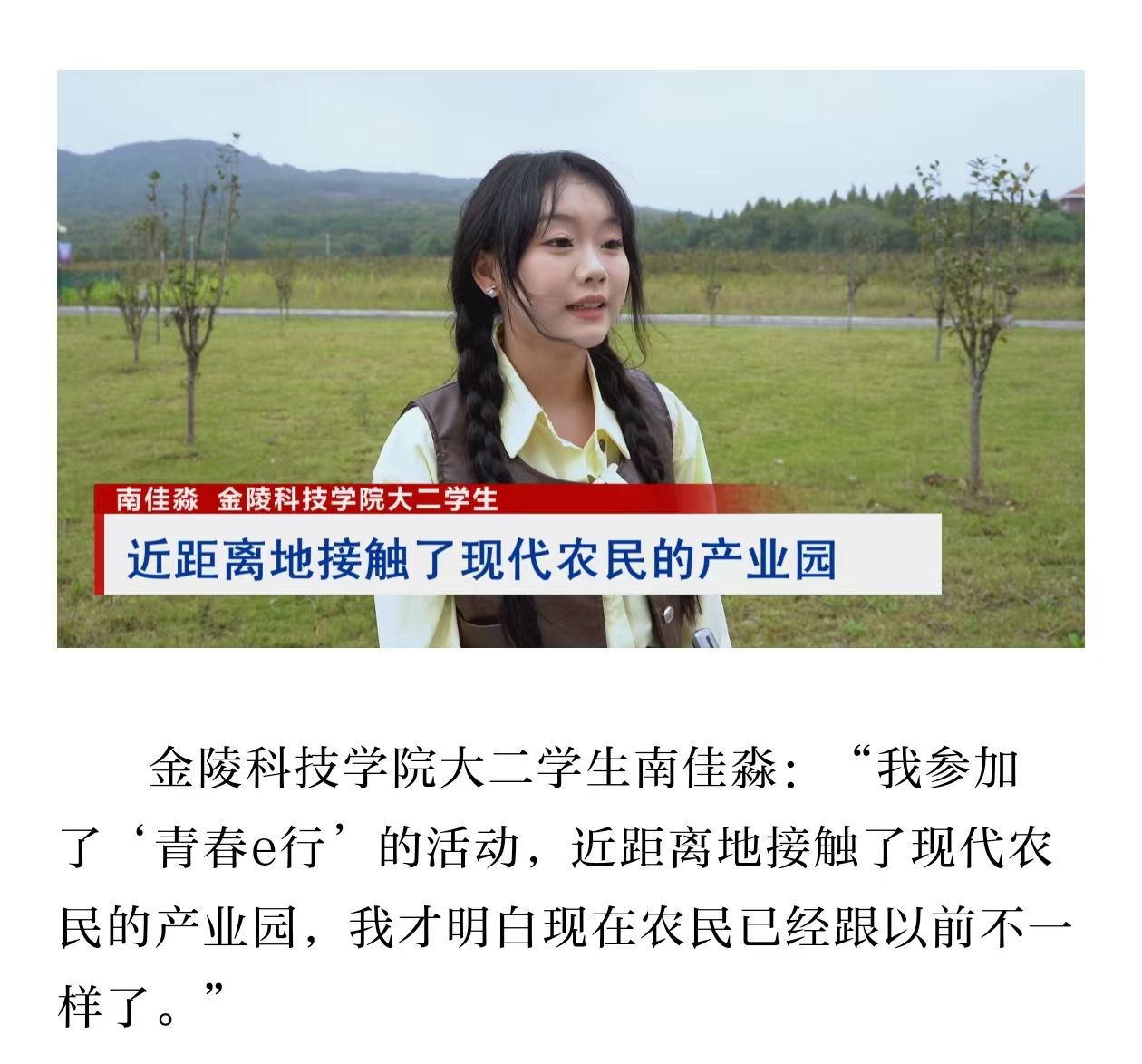 比赛结束后,南佳淼接受了中国新闻网的采访。面对镜头,她说道:“我参加了‘青春e行’的活动,近距离地接触了现代农民的产业园,才明白了现在农民已经跟以前不一样了。”随着数字化时代的迈进,直播电商成为一种新型潮流,以南佳淼为代表的新时代大学生,与时俱进,不断探索数字化产品应用能力,旨在为乡村振兴贡献青春力量。