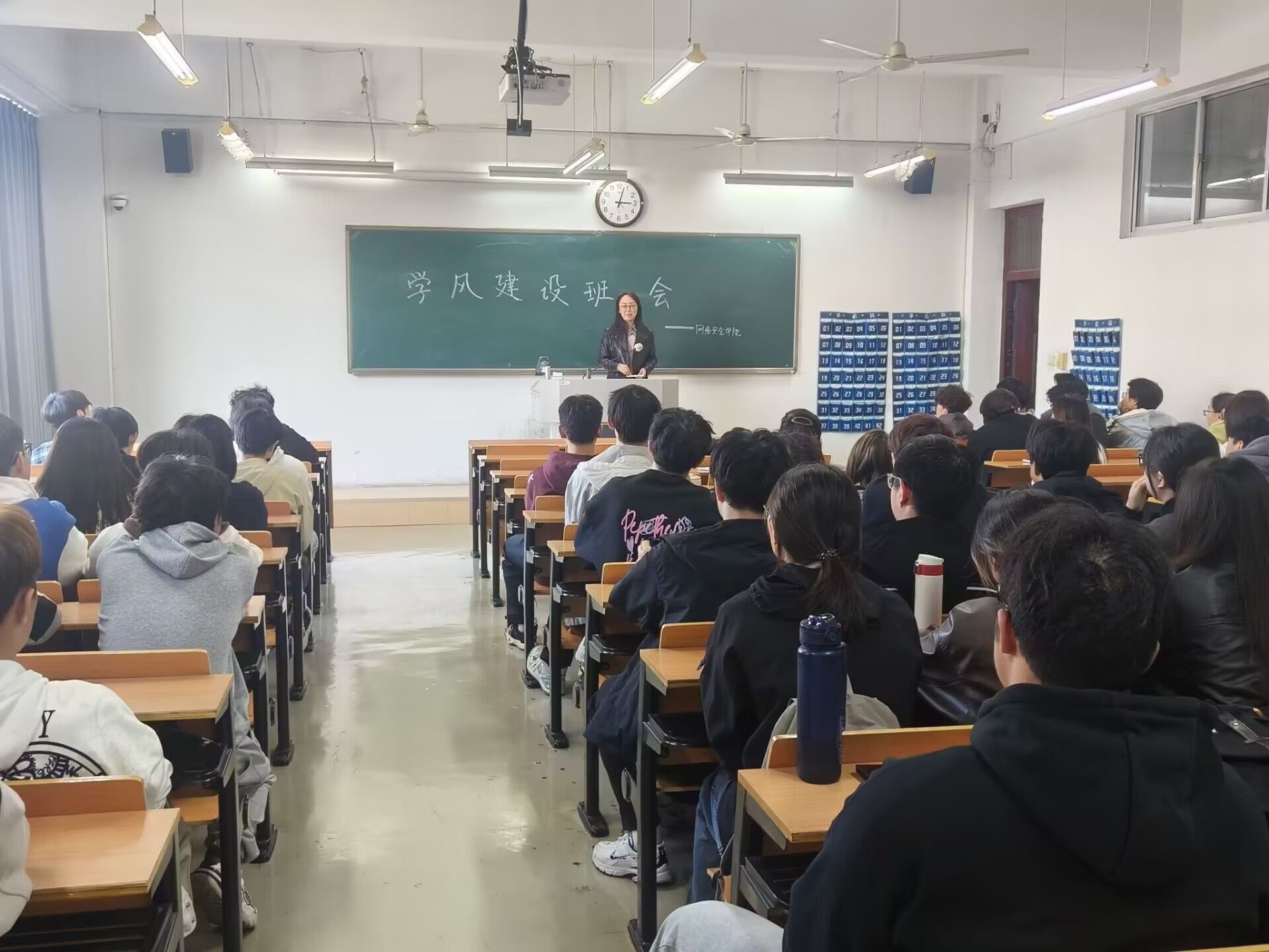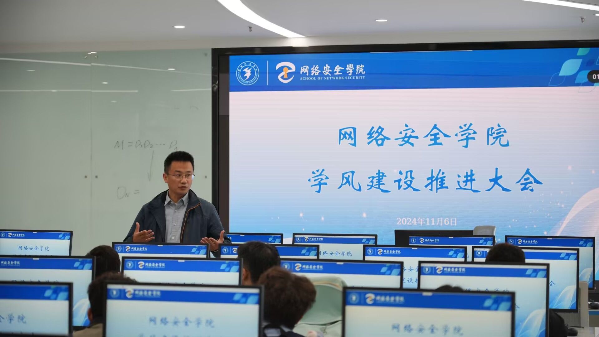 为强化本科教育教学审核评估冲刺阶段学风建设工作,切实增强全体学生对学风建设重要性的认识,11月6日中午,网络安全学院在科技楼4-1103实验室召开学风建设推进大会。副院长阎浩、学工办副主任孙垒以及全体学生干部参会。