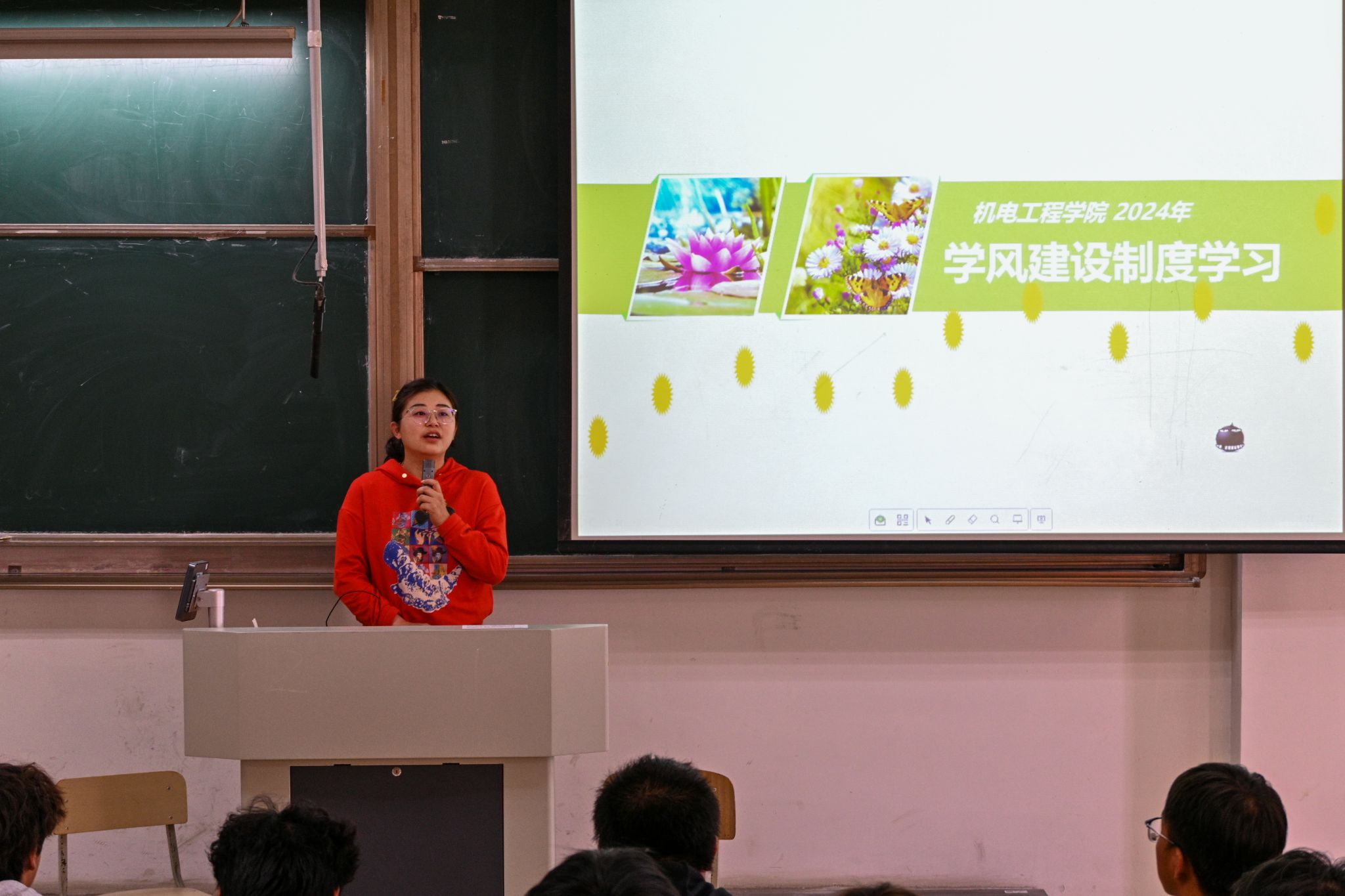 11月1日下午,机电工程学院举办了2024级新生入学教育暨辅导员见面会,学院全体辅导员、24级300余名本科新生参加。本次见面会在两个教室同时展开,旨在帮助新生们更好地了解学校和学院基本概况,熟悉校园环境,尽快适应大学学习生活节奏,分享信息,建立新生与辅导员沟通的桥梁。