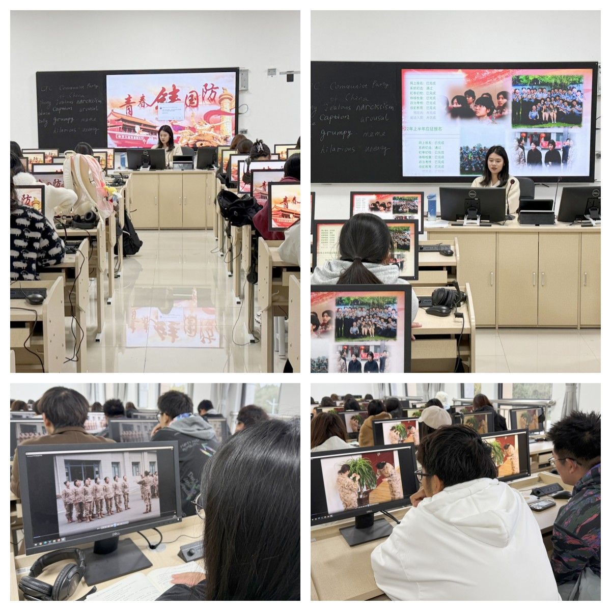 11月19日下午,外国语学院在崇文楼北楼217语音室举办了“我的入伍故事”分享会,邀请退伍学生沈桢给2024级新生分享了自己入伍两年的经历和感想,并向学弟学妹们讲解了大学生入伍的政策和要求。在深情的回顾与详尽的政策说明中,沈桢帮助新生们系统地理解了国防的重要性和个人在其中可以扮演的角色。