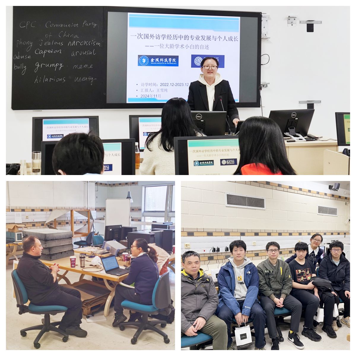 王雪纯于2022年12月至2023年12月在英国巴斯大学教育系进行了为期一年的访学交流。巴斯大学位于世界文化遗产城市巴斯,其教育系以多样的教研形式和机制著称。王老师在访学期间深入体验了巴斯大学的课堂学习、讲座、教授组会及博士生论文开题等活动,尤其对教育系的研究集群和学科设置有了全面了解。王老师还参加了巴斯大学教育系下属的亚洲教育研究中心的多场讲座,拓展了国际教育视野。她特别提到,巴斯大学教育系的教研形式注重批判性思维和教学内容的批判继承,对她的科研与教学发展产生了深远影响。