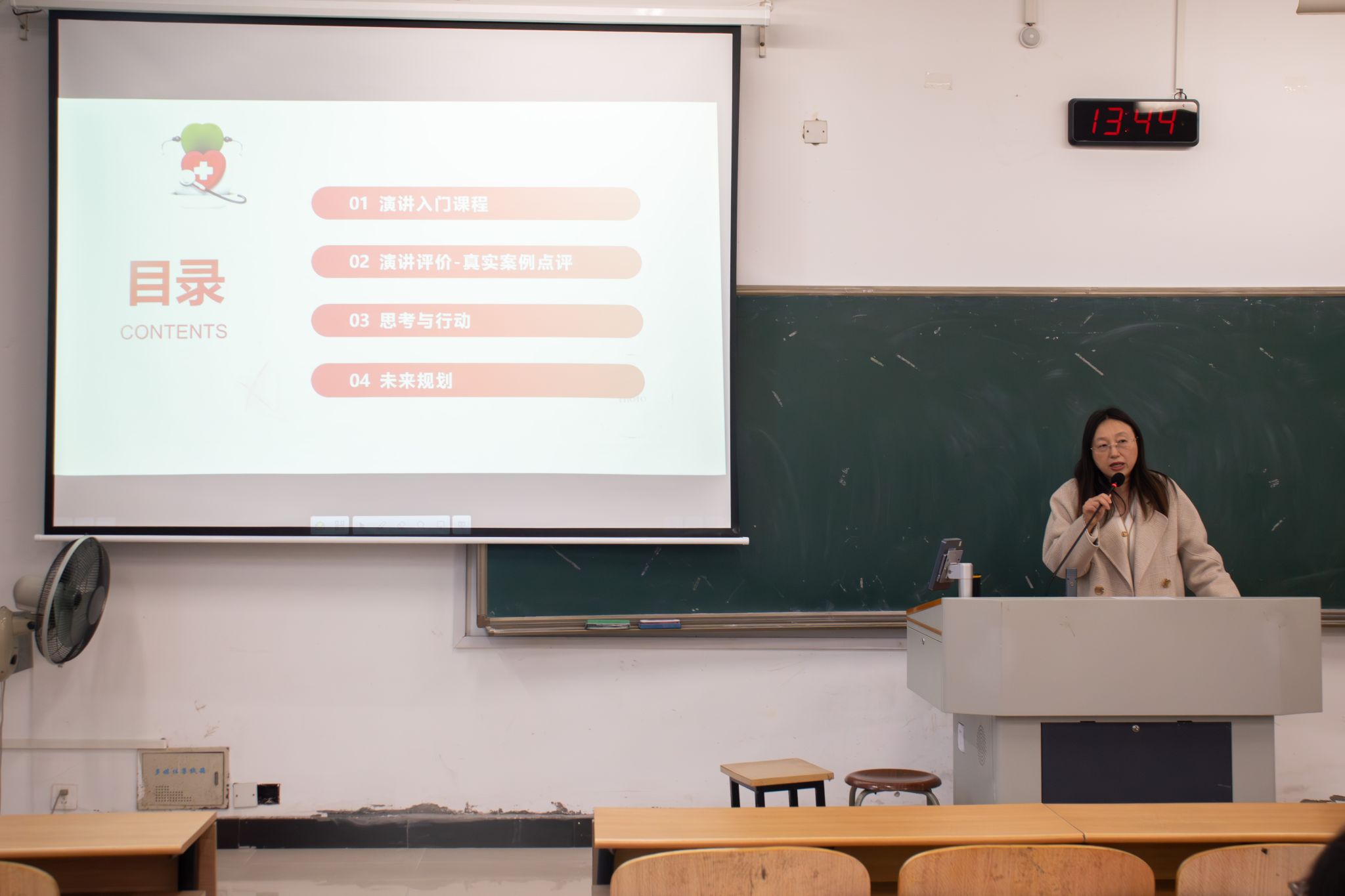 在教授面对面活动中,王玲副教授讲解了视光专业演讲训练入门课程,包括PPT展示和口才训练两方面。接着,获得本次豪雅源计划满分的徐颖萱同学进行演讲预演,王玲副教授对其演讲中的优势与不足详细点评,并给出了针对性的指导建议。在未来规划环节,王玲副教授邀请了上一届源计划专业技能一等奖获得者刘书睿分享经验。参会的同学们目光紧跟着演讲者,凝神倾听,沉浸在浓厚的专业氛围中。