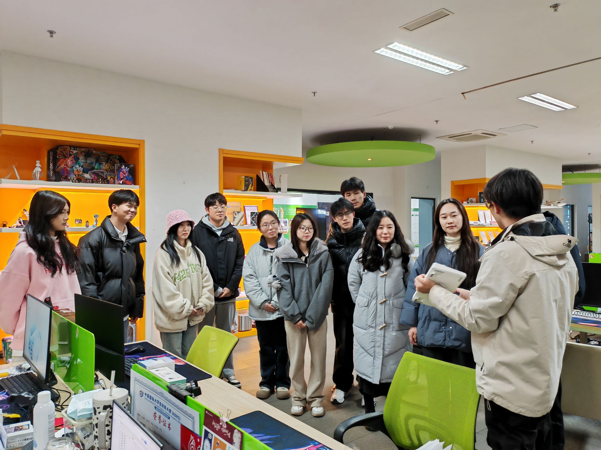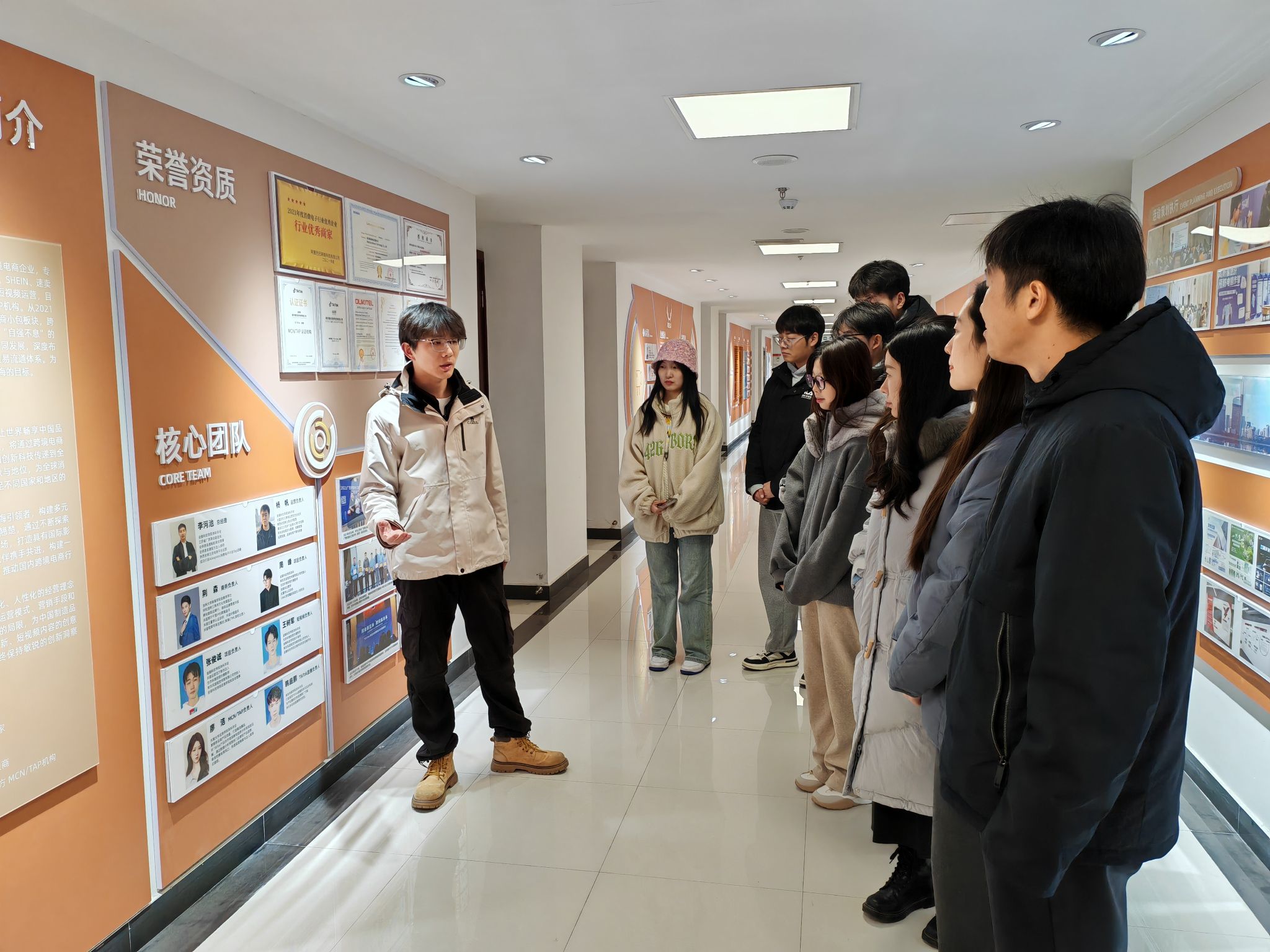 为了更好地帮助在校学生了解创业、积累创业经验,动漫学院于12月18日组织了校友创业苗圃参观活动。学院学工办主任聂钰石、辅导员王月恒和殷子妍带领部分有创业意愿的在校生,参观了由动漫学院校友创立的南京万波睿特科技有限公司。