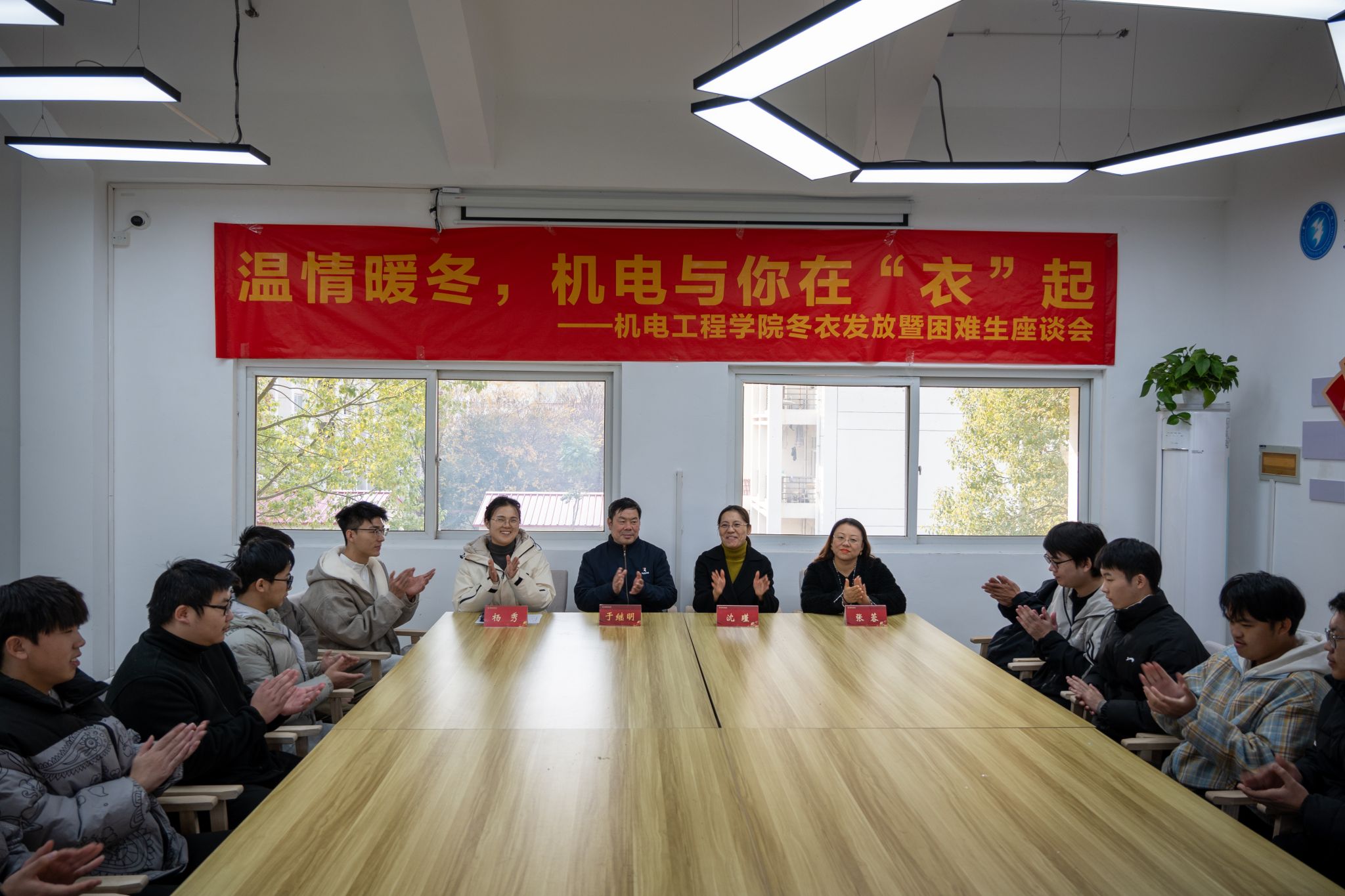 12月18日,机电工程学院在南01一站式学生社区举行了2024年爱心冬衣发放活动暨家庭经济困难学生座谈会。学院党委书记沈瑾、副书记张蓉、副院长于继明出席本次活动,杨秀老师主持会议,全体受助学生参加。