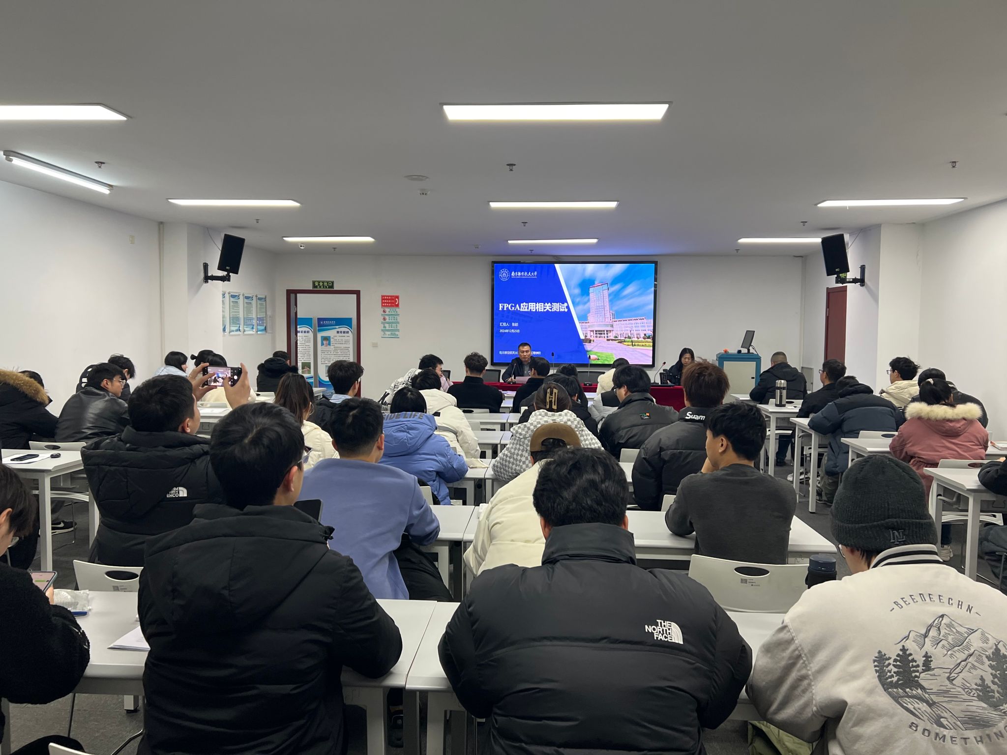 为进一步拓展学术视野并加强学术交流合作,12月25日下午,电信学院邀请南京航空航天大学电子信息工程学院张颖与陈鑫两位老师讲授FPGA自动化测试与应用方面的学术前沿知识与研究进展。学术讲座活动由徐志国书记主持,电子科学与技术系全体教师以及电子信息专业硕士点研究生参加了此次活动。