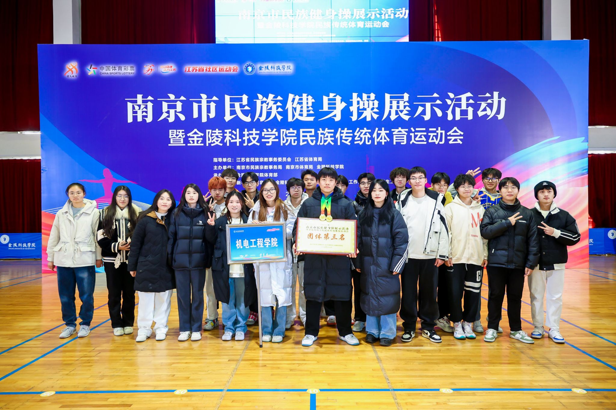 近日,南京市民族健身操展示暨球王会体育官方网站首届民族传统体育运动会在校体育馆成功举办。机电工程学院代表队凭借出色的表现和顽强的拼搏精神,最终荣获团体第三名的好成绩。
