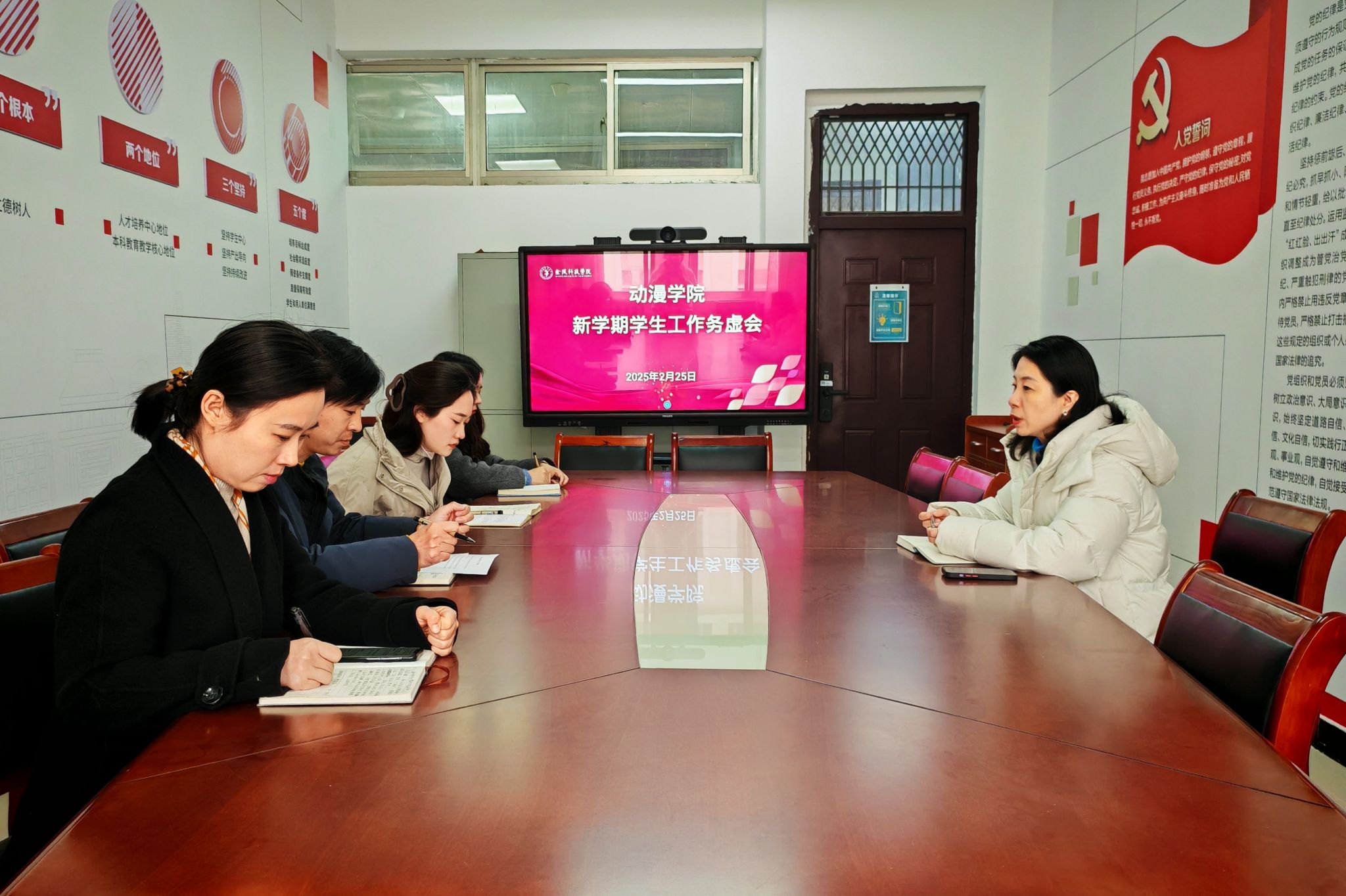 2月25日,动漫学院在7419召开了新学期学生工作务虚会。学院党总支部书记赵宁,全体辅导员参加了会议。