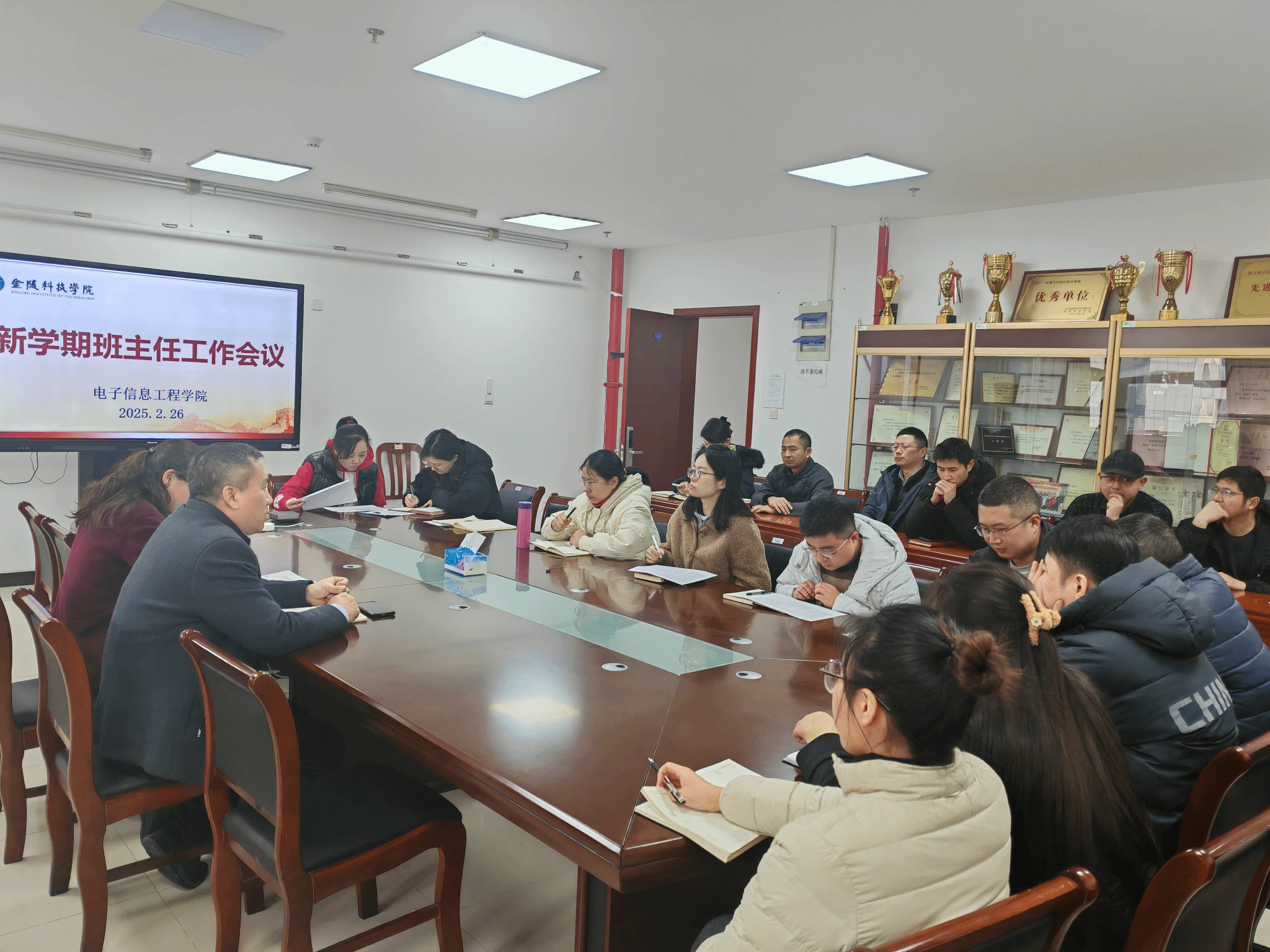 2025年2月26日电子信息工程学院在科技楼4号楼410会议室召开2025年新学期班主任工作例会。学院党委书记徐志国、副书记陈智慧出席会议并讲话,全体辅导员、班主任参加会议。