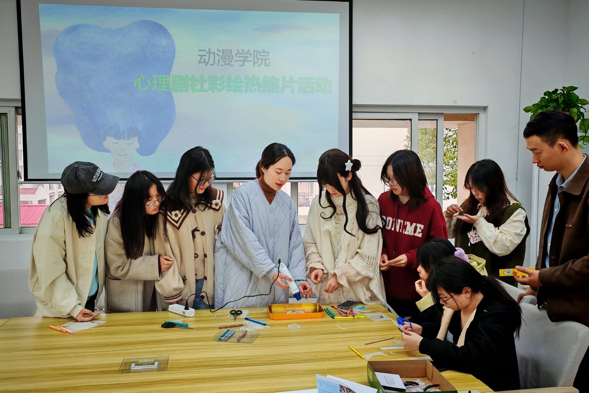 3月13日,动漫学院心理剧社在南区01栋一站式学生社区举办了彩绘热缩片的特色手工体验活动,心理剧社指导老师王月恒、全体社团成员参加了本次活动。