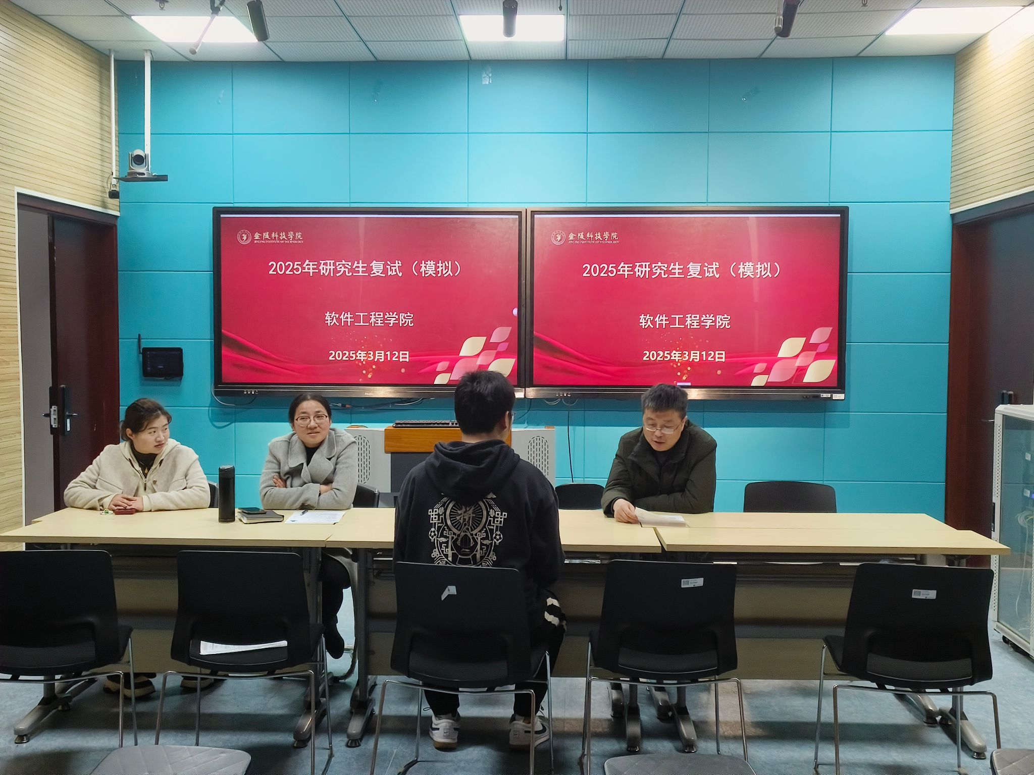 为帮助考研同学了解标准复试流程,缓解面试压力,提升应试能力,3月12日,软件工程学院在科技楼2号楼226会议室举办了2025届毕业生研究生模拟复试活动,本次活动邀请了洪蕾教授、李慧教授和丁展副教授作为指导老师。