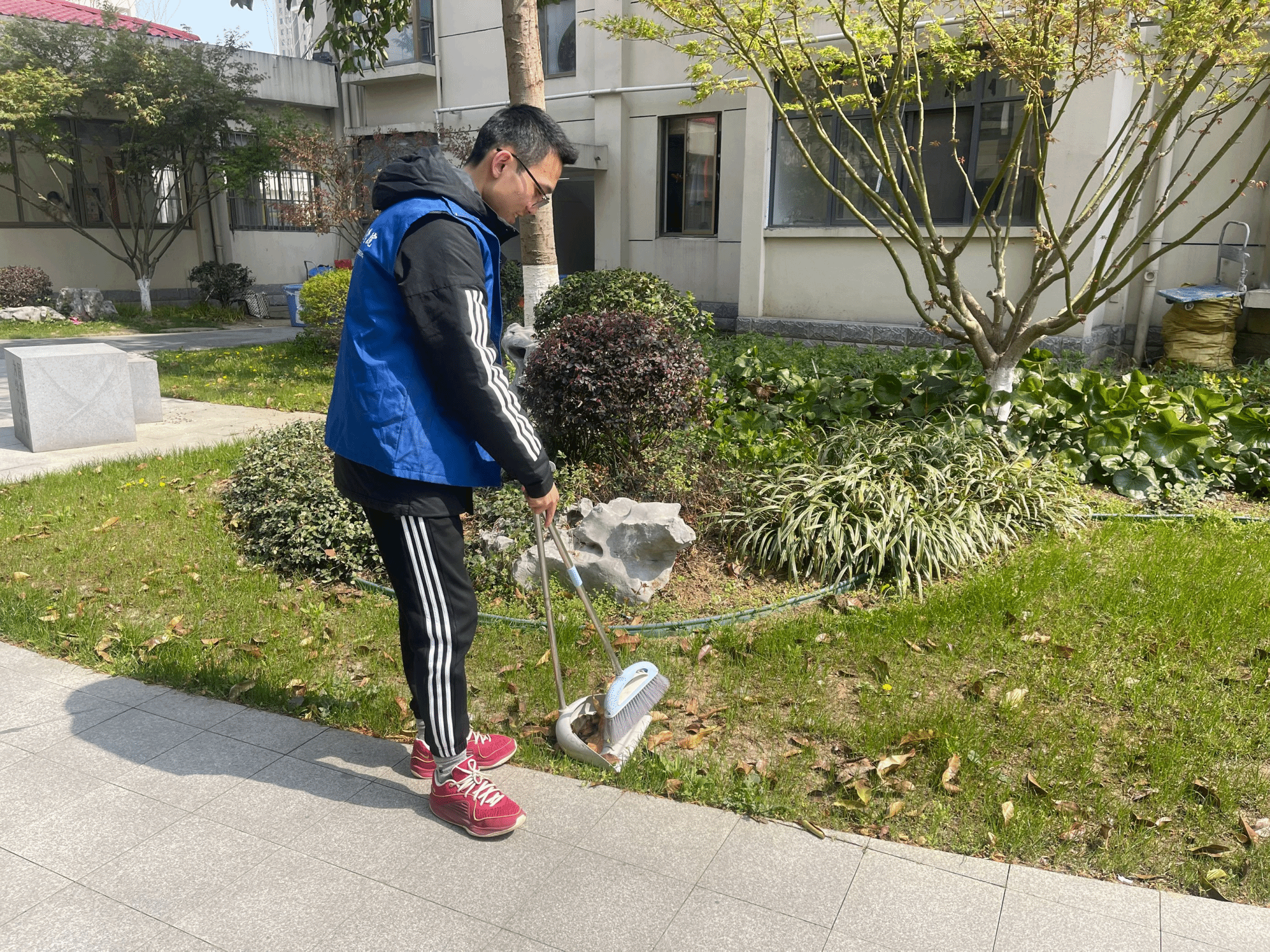 学生党员们热情高涨,早早抵达社区,按照分工,有序领取扫帚、抹布、垃圾袋等清洁工具。有的党员专注清扫路面落叶和杂物,不放过任何一处卫生死角;有的认真擦拭社区的公共设施,如桌子、玻璃窗等,使它们焕然一新;还有的党员深入绿化带,清理隐藏在草丛中的垃圾。经过大家的共同努力,社区环境得到显著改善,道路干净整洁,公共设施光亮如新,绿化带生机盎然。