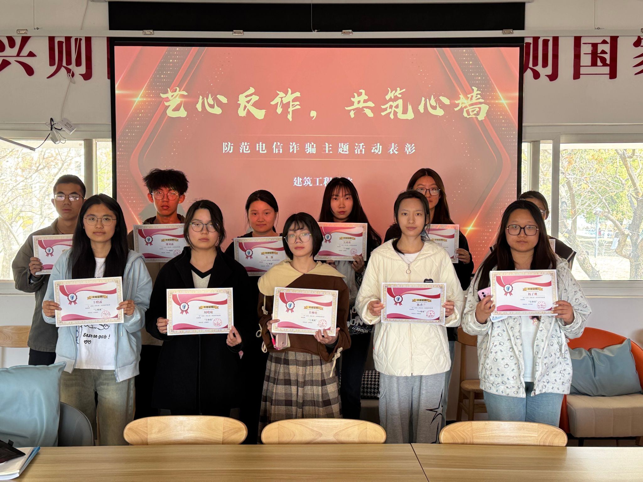 为进一步增强学生防范电信网络诈骗的意识,创新反诈宣传形式,营造校园安全文化氛围,建筑工程学院于4月3日在南区08栋一站式学生社区举办“艺心反诈,共筑心墙”为主题的反诈创意作品征集评比活动。