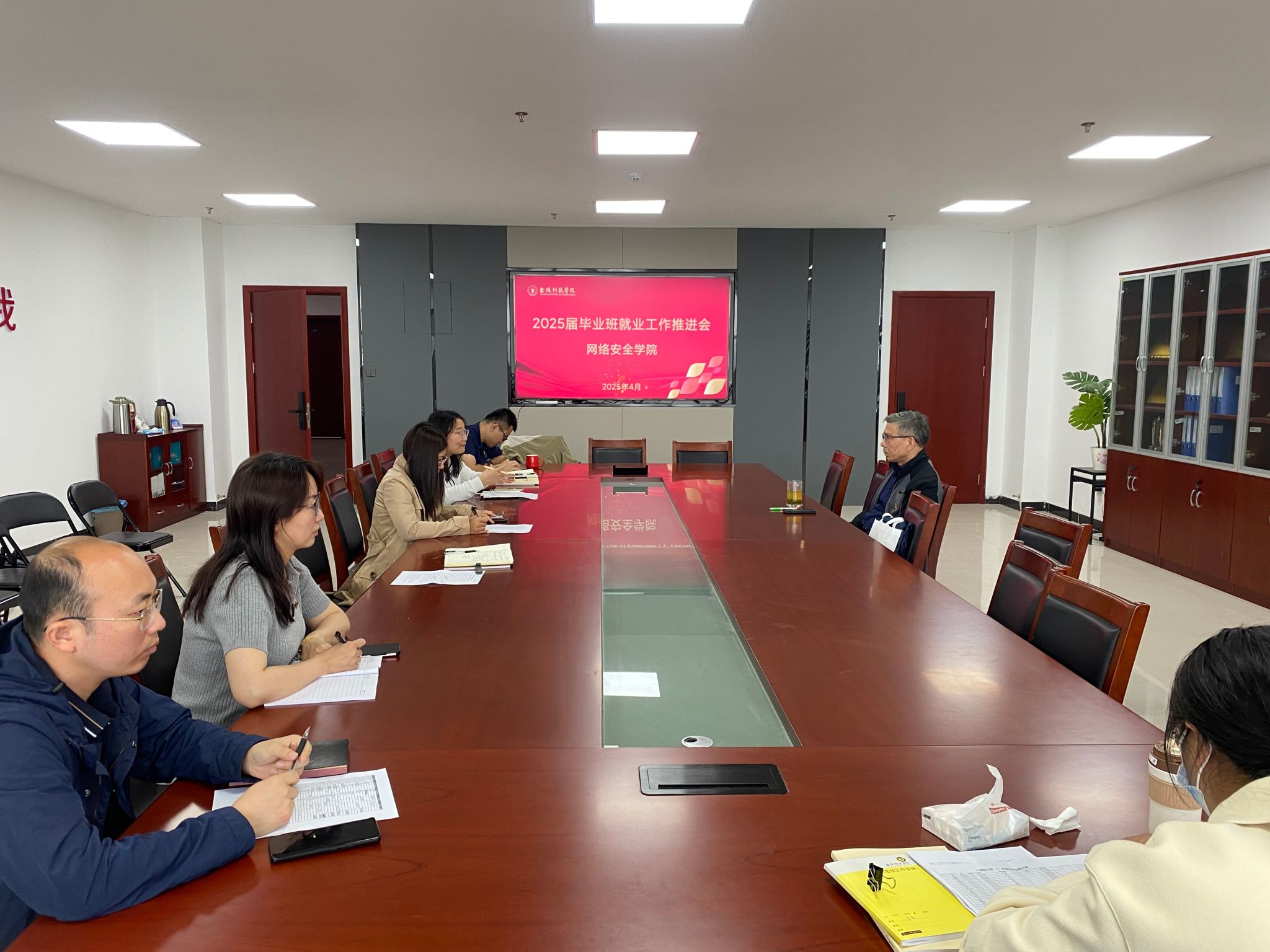 为更好地推进2025届毕业生就业工作,促进学生高质量就业,4月21日上午,网络安全学院在1218会议室召开了2025届就业工作推进会,学院领导、就业干事、毕业班辅导员和班主任参加了此次会议。