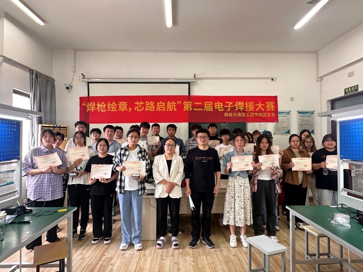 为了提升同学们的实践能力、激发创新素质,4月16日下午,网络与通信工程学院在工科楼举办了“焊枪绘章,芯路启航”第二届电子焊接比赛,光电信息科学与工程系沈令斌和田丽萍老师作为评委参加了活动。