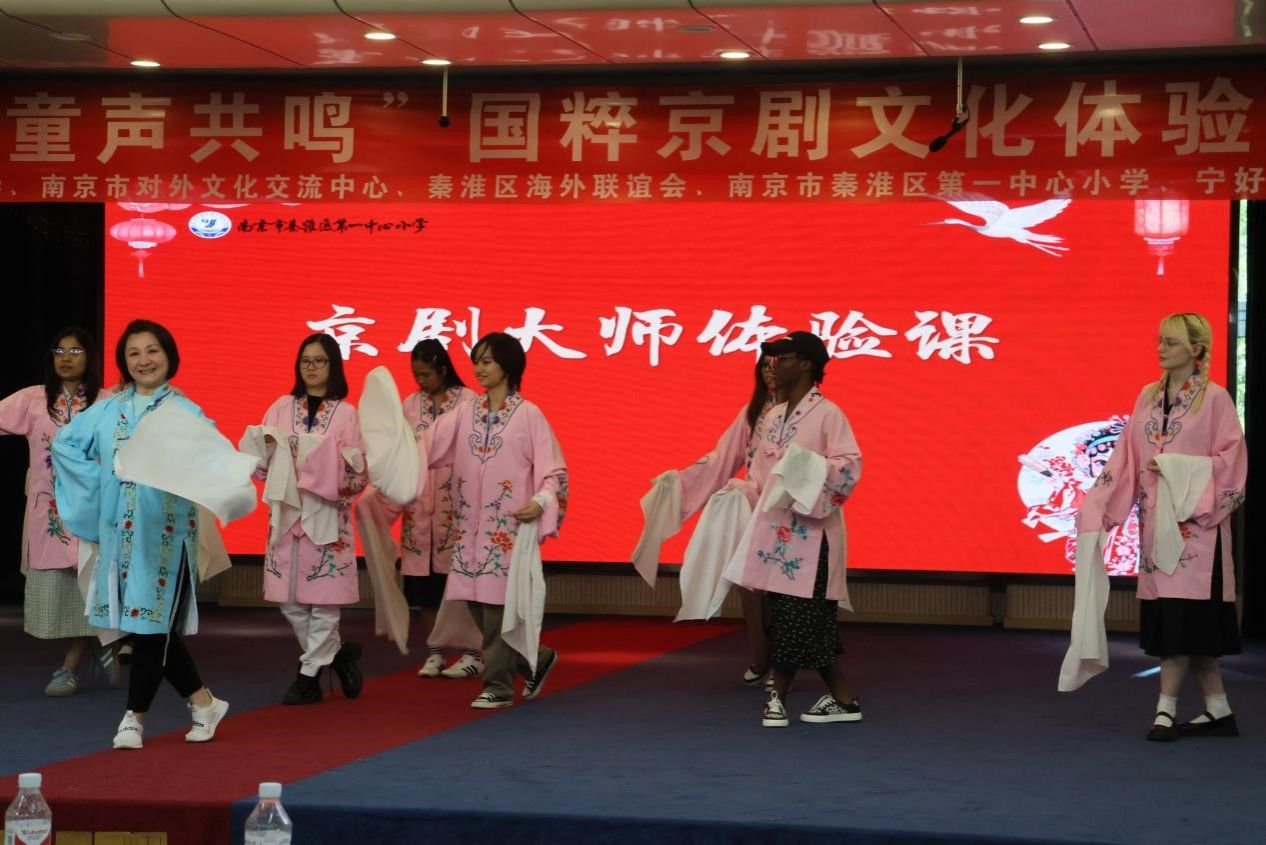 4月23日,由南京市海外联谊会、南京市对外文化交流中心、秦淮区海外联谊会、南京市秦淮区第一中心小学、宁好荟公益组织共同举办了一场别开生面的京剧主题文化交流盛宴,球王会国际教育学院的23名留学生有幸受邀,踏入南京市秦淮区第一中心小学,亲身体验中国传统戏剧——京剧的独特魅力。