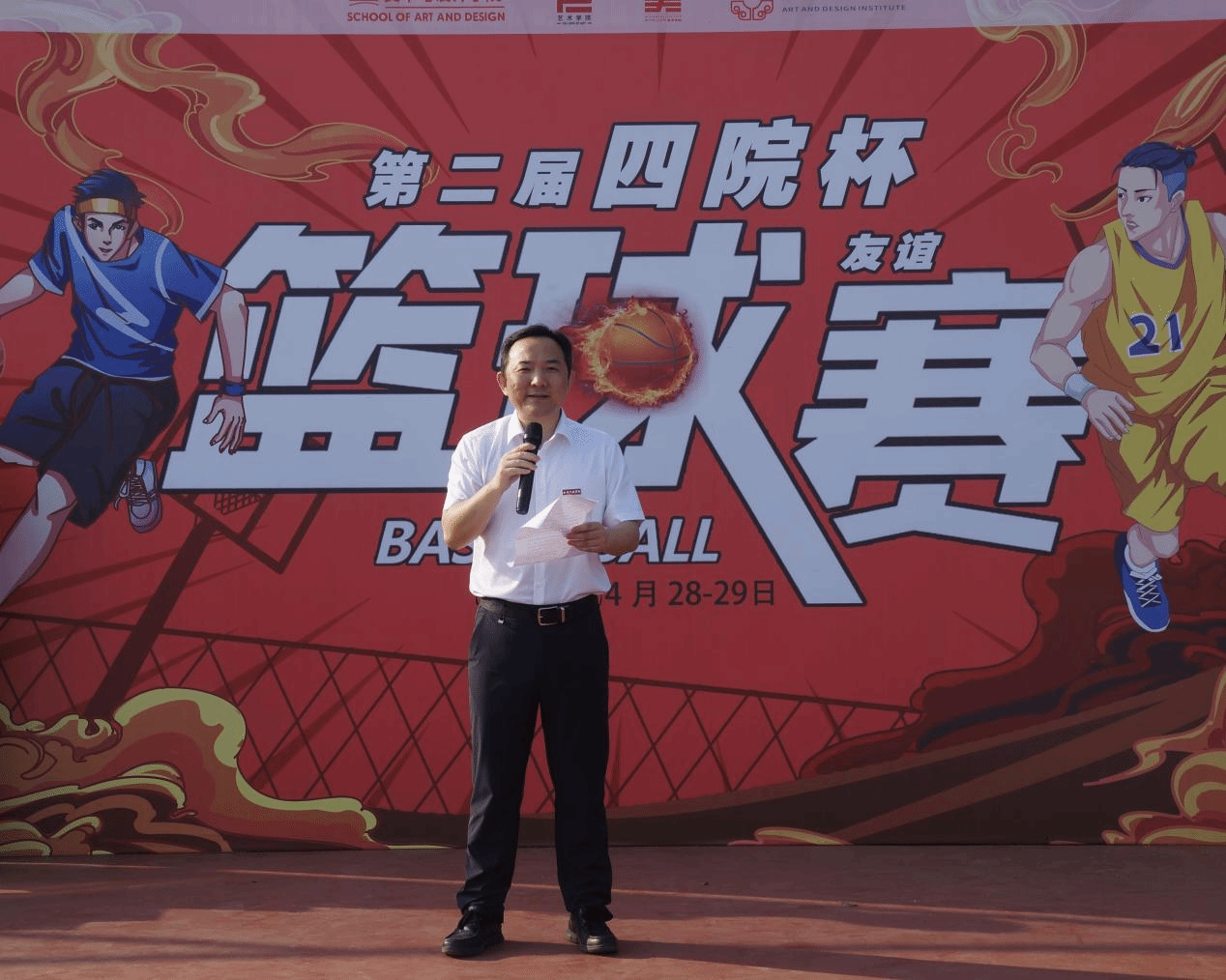 4月28日,球王会体育官方网站艺术学院主办的“四院杯”篮球友谊赛鸣哨启幕。来自球王会体育官方网站、南京传媒学院、南京工程学院和南京晓庄学院艺术院系的四支代表队齐聚赛场,以竞技促交流,以运动展风华,共探五育融合育人新路径。