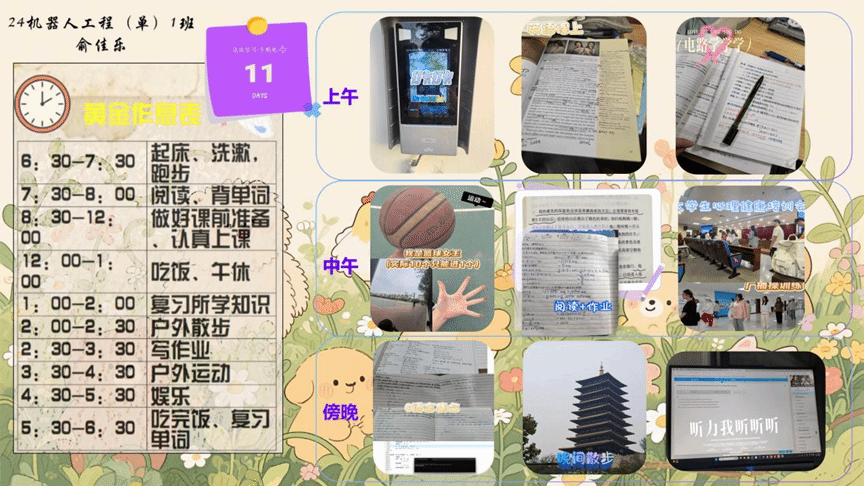 活动设置“作息表制定—打卡挑战—评比表彰”三大环节。参赛学生依据个人目标,规划学业、运动、阅读等项的每日计划,形成个性化作息表。打卡期间,同学们通过指定网络平台实时更新进度,内容涵盖晨读单词、课堂学习、体育锻炼、阅读分享等多元场景,以实际行动践行自律承诺。学院定期推送激励语录,鼓励学生进行交流讨论,营造互助共进的积极氛围。随着21天打卡周期的圆满结束,众多同学在活动中收获颇丰。一位参与者感慨道:“此次活动有效改善了我的拖延症,显著提升了学习效率。”据统计,超过七成的同学完成了21天全勤打卡,众多同学在挑战中实现了自我突破,将自律的种子深植于日常生活的土壤之中。