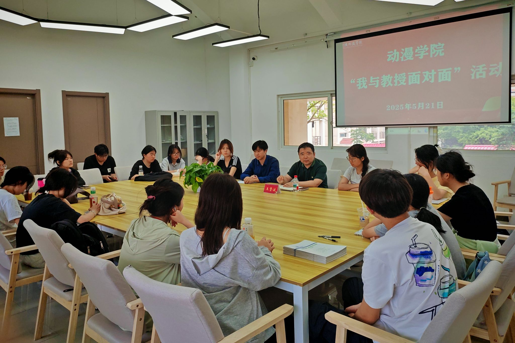 5月21日,动漫学院在南区01栋一站式学生社区,举办了本学期第一场“我与教授面对面”活动。本次活动邀请了动漫学院院长王贤波教授与同学们进行分享交流。动漫学院2023级、2024级各专业学生代表、院学生会学习部成员参加了活动。