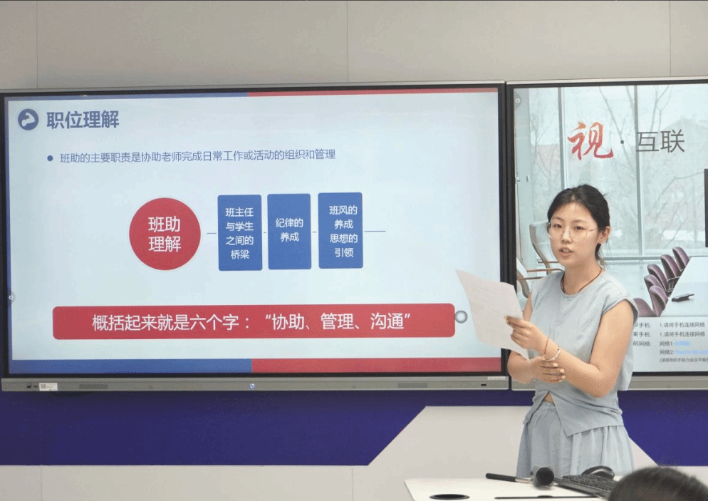 郑灵敏老师充分肯定了2024级辅导员助理的辛勤工作,并激励2025级辅导员助理要以他们为榜样,认真负责,不断提升自身素质与工作能力。会上,根据抽签顺序,2024级辅导员助理们有序地进行述职,每一位辅导员助理都充分准备,制作了精美的PPT,讲述自己过去一年中带班的经历和经验,遇到突发事件及其应对措施等。2025级辅导员助理依次竞聘,他们从学业,工作,志愿服务和社会工作以及个人优势展示自己,希望能成为辅导员助理,为新生的成长贡献力量。