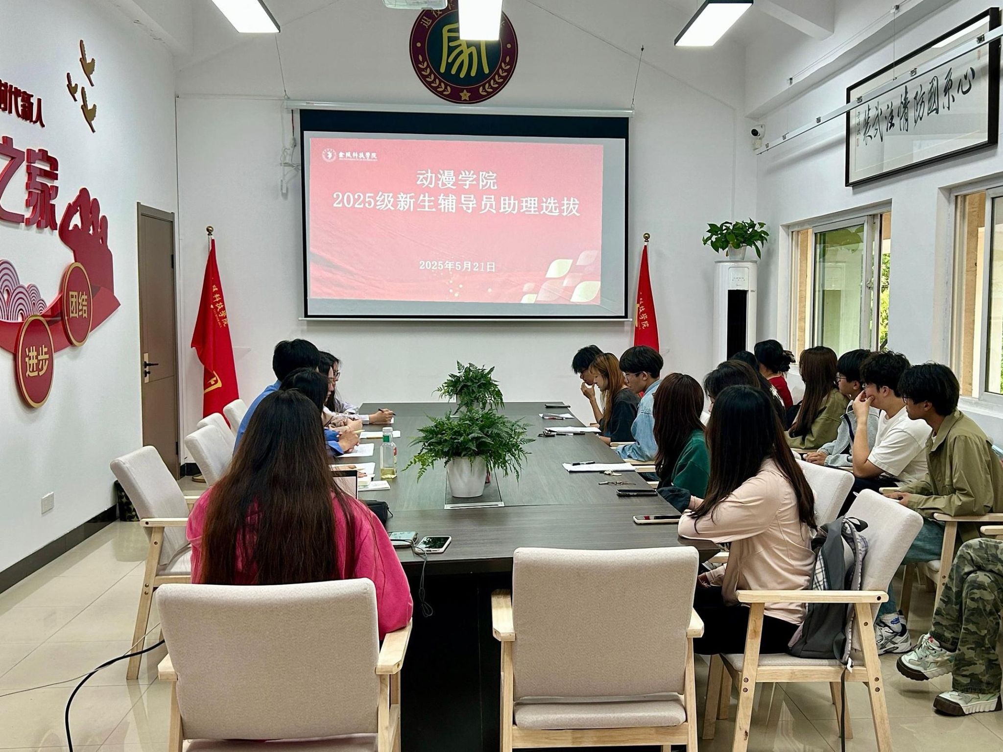 为充分发挥朋辈引领作用,助力新生成长成才,5月21日,动漫学院在南区02栋一站式学生社区举办了2025级新生辅导员助理选拔工作会,学院全体辅导员担任评委,16名大、小班助竞选者参与现场选拔。