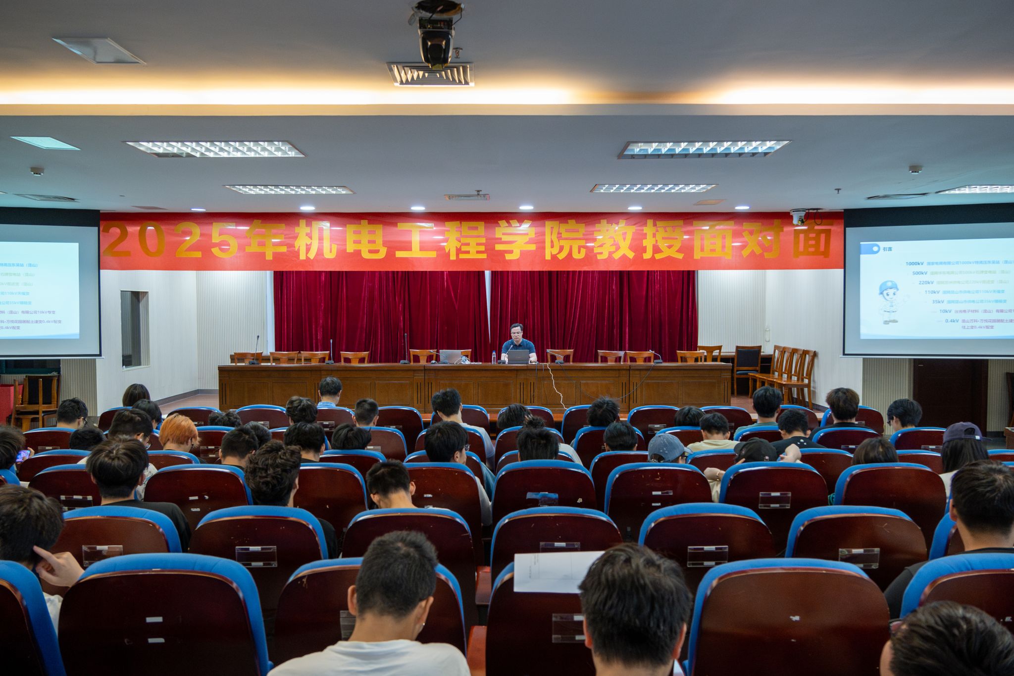为助力学生紧跟电力工程领域的前沿动态,加强师生间的互动交流,提升科研素养与创新思维,5月24 日下午,机电工程学院在图书馆第二报告厅举办“教授面对面”活动,邀请苏州三新供电服务有限公司的特级技师、高级工程师陈丽斌作专题报告。陈丽斌不仅荣获“农电优秀人才”称号,更是享誉业内的“苏电工匠”,凭借其在供电服务领域丰富的实践经验与深厚专业造诣,吸引众多师生前来聆听。