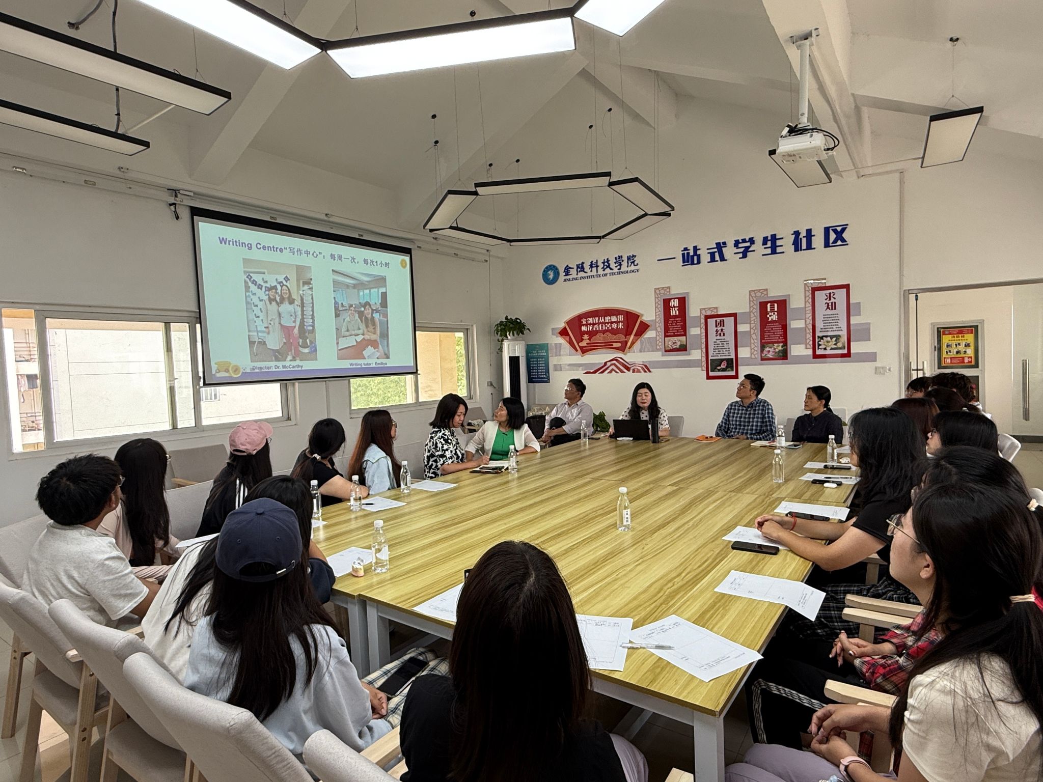 5月27日下午,一场别开生面的“教授面对面”活动在南区01栋学生一站式社区温馨启幕。外国语学院夏玉琼副教授,以自己在美国游学一年的丰富经历为切入点,为大一的16名学生带来了一场生动且富有启发性的分享。学校相关领导也亲临现场,与同学们一同聆听分享,并参与了交流互动。