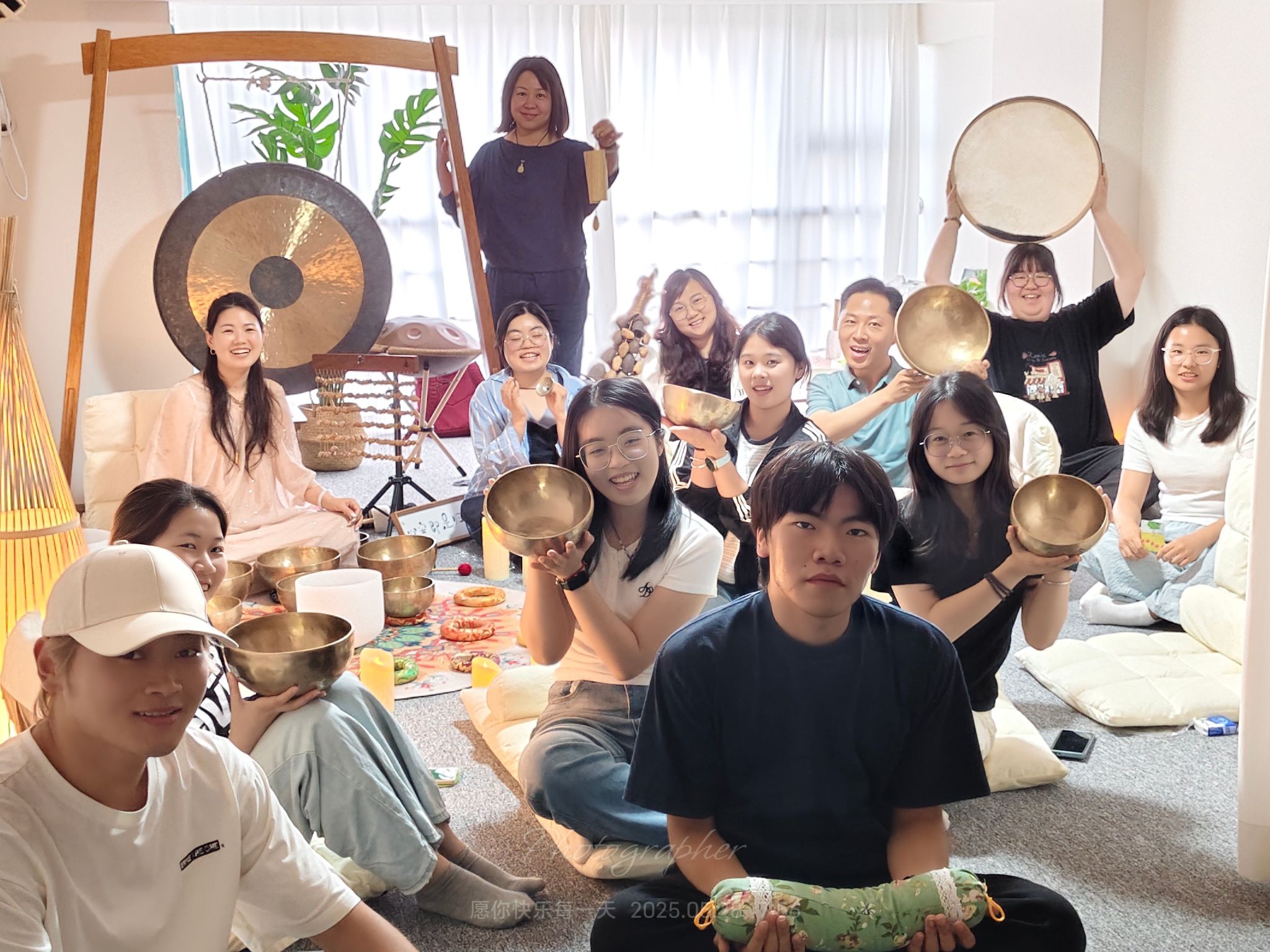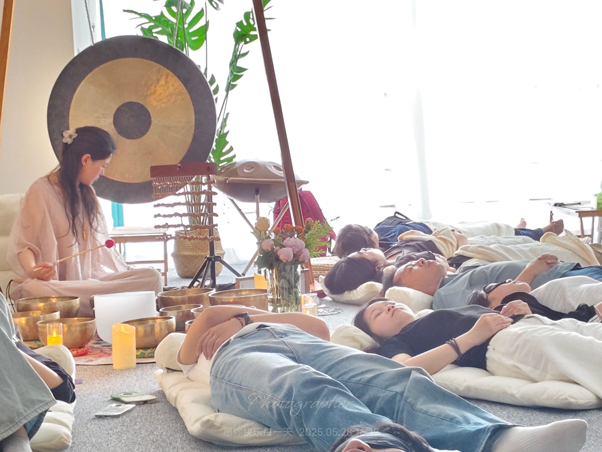 在专业疗愈师刘彦的引导下,师生们通过颂钵的悠远共鸣感受声波与身体的共振。金属振动带来的舒缓频率帮助大家释放压力、深度放松,许多人甚至在钵声渐息时进入高质量的冥想状态,紧绷的神经得到有效舒缓。