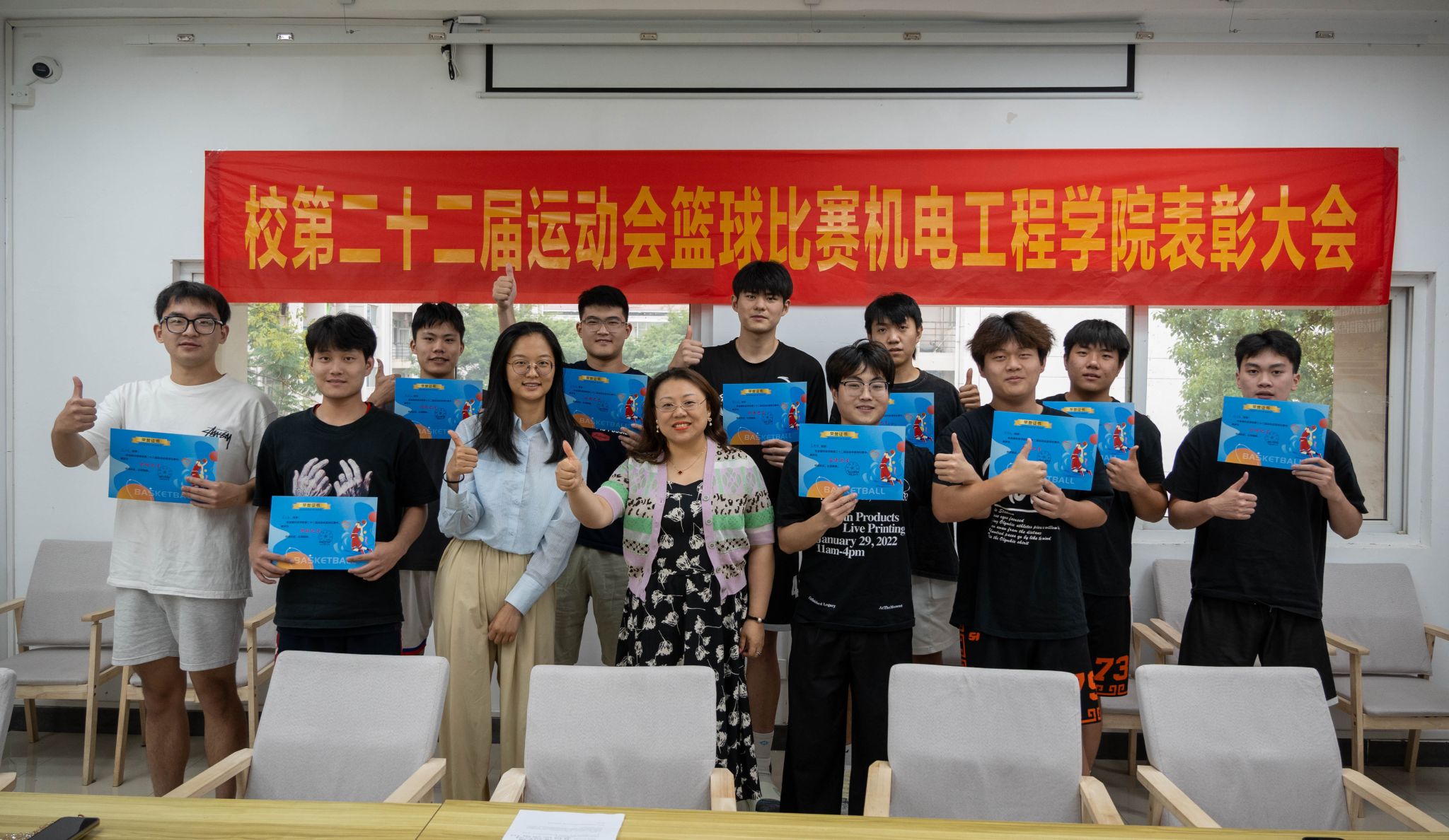 6月11日下午,机电工程学院在南区01栋学生一站式活动中心举办了校运会篮球比赛表彰大会。院党委副书记张蓉、辅导员黄凝宁以及院男子篮球队队员出席了表彰大会。
