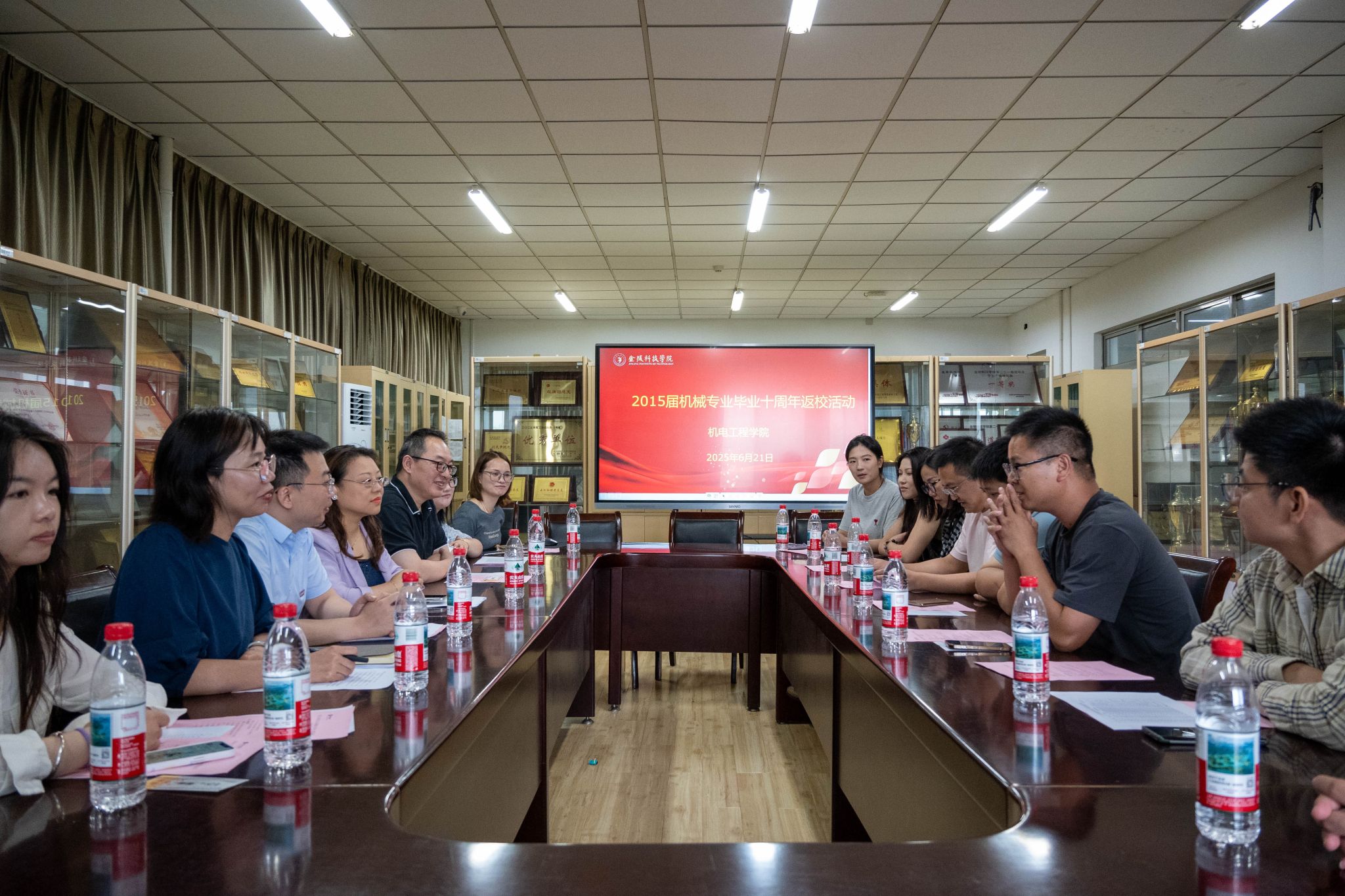 十年重逢,青春再启,6月21日,2015届机械专业近25名校友从全国各地重返校园,共赴毕业十周年返校之约,重温青春岁月,共话母校情谊与发展。机电工程学院党委副书记张蓉、学生工作办公室副主任李梅、2015届机械专业班主任杨传森共同参加此次活动,活动由李梅主持。