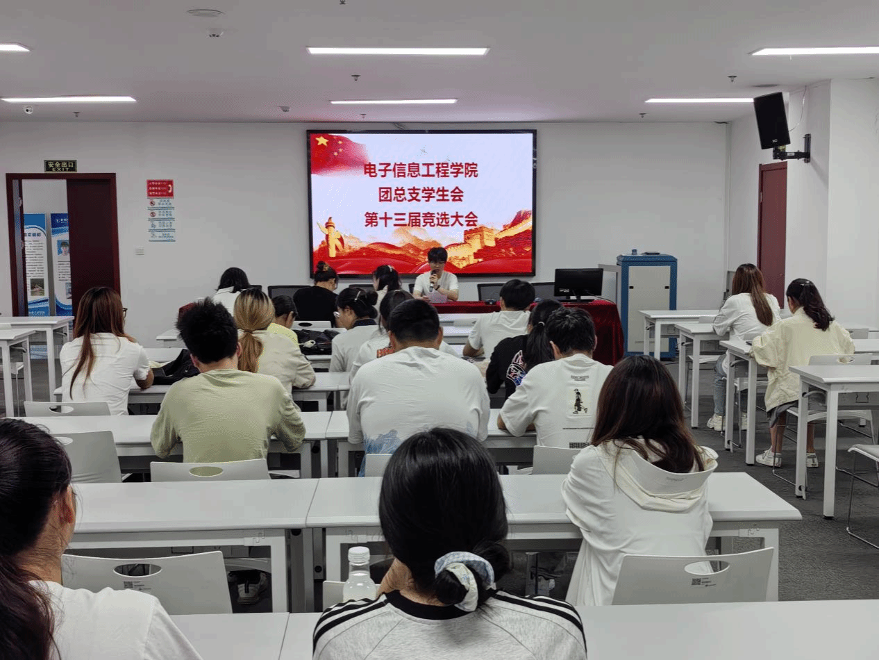 为进一步加强学生干部队伍建设,保障学生工作的连续性与创新性,6月25日下午,电子信息工程学院团总支在科技楼4号楼304-2会议室召开第十三届学生会换届竞选大会。学院党委副书记陈智慧、学工办副主任宋洁明、辅导员郭晓、上一届学生会全体成员以及新一届学生会候选人参加会议。