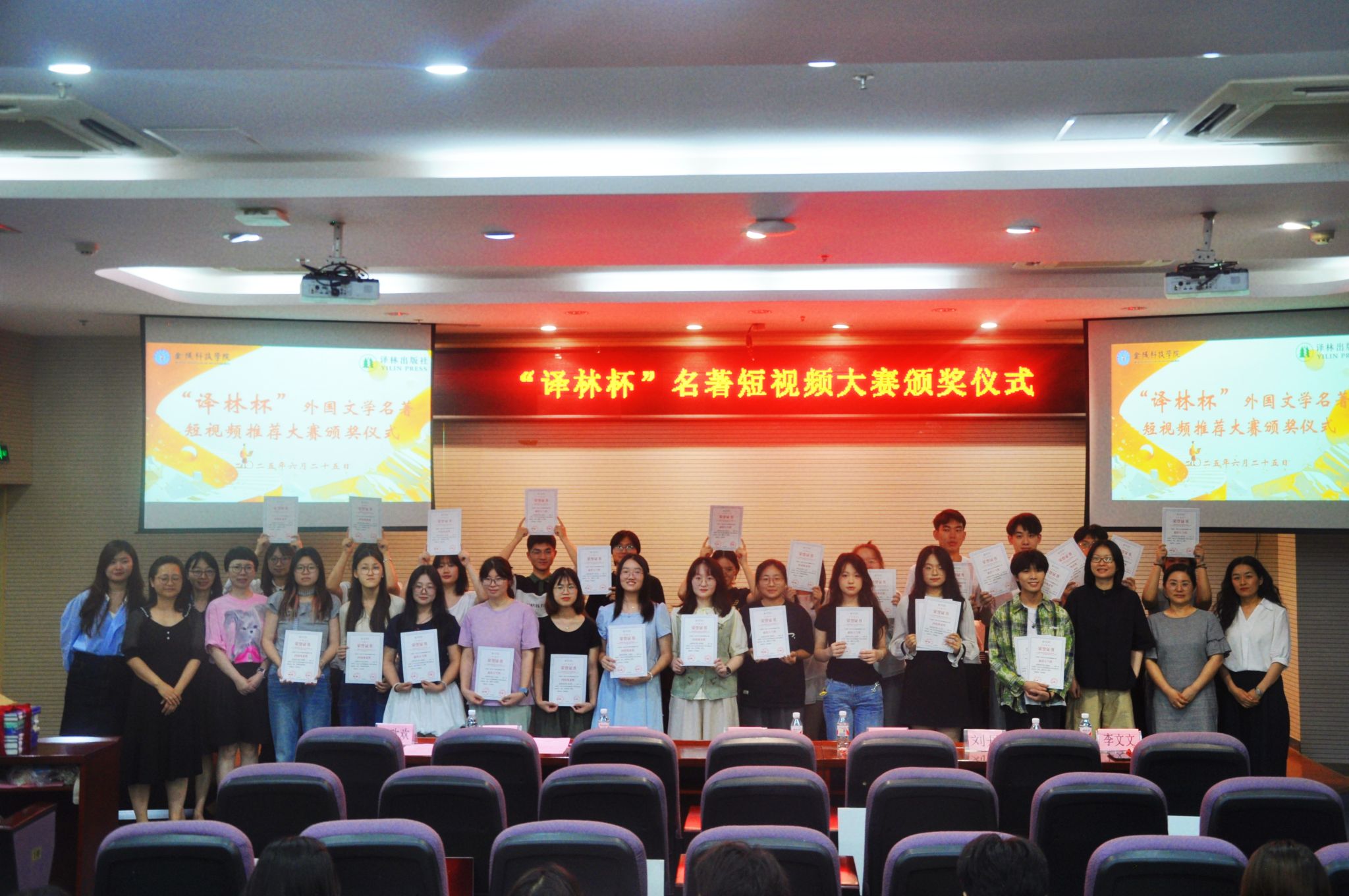 6月25日下午,在幕府校区图书馆报告厅,一场青春与文学经典碰撞的盛宴——“译林杯”外国文学名著短视频推荐大赛颁奖仪式热烈举行,译林出版社外国文学中心副主任张睿,人文学院党委副书记董宇、数字出版系主任王倩倩、副主任刘丹、旅游管理系副主任陈玲玲、数字出版系教师李文文、学院团总支书记高欢欢出席了仪式。