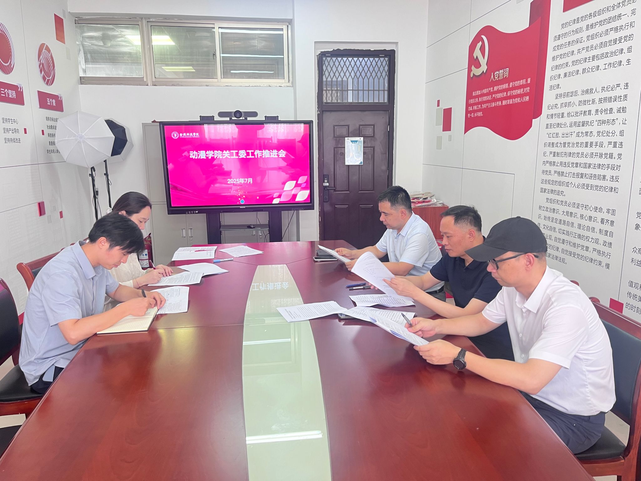 7月15日,动漫学院在7419会议室召开学院“五好”关工委建设工作推进会。学院关工委主任葛维东、王贤波,副主任王柯,关工委成员等参加了会议。会议紧紧围绕新时代教育系统关工委工作定位、工作方针和主要任务,坚持基层导向和问题导向,对领导班子建设、“五老”作用发挥、制度建设执行、积极探索创新、活动经常效果五大方面逐项对标对表,系统梳理短板、明确推进路径,全力推动学院关工委工作提质增效。