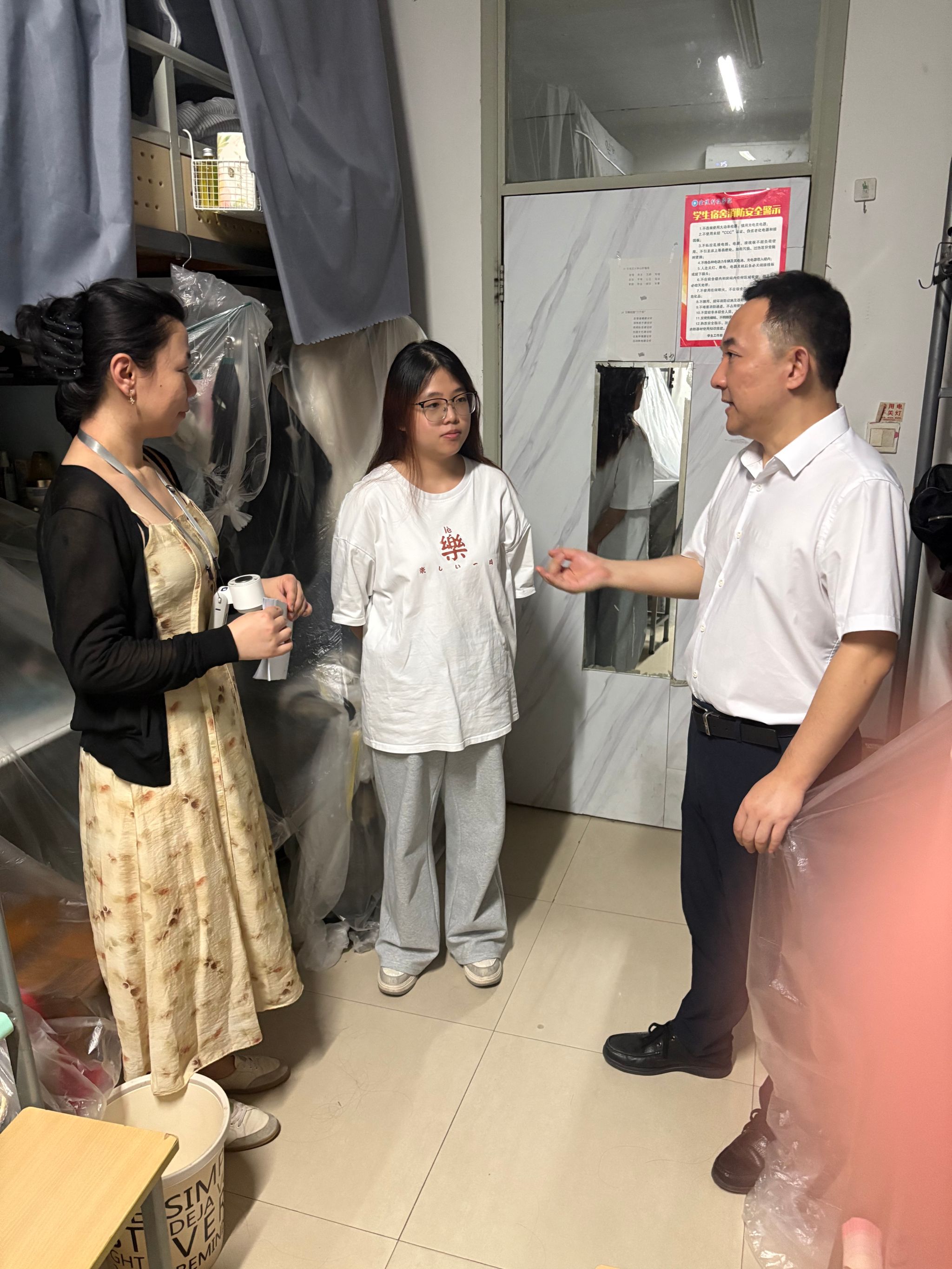 “暑期留校既要专注学习、实践,也要时刻绷紧安全这根弦,实验室用电、外出交通安全都不能马虎。”党委副书记鲍锐深入学生宿舍与留校学生面对面交流,他详细询问同学们的暑期规划、饮食作息及创作进展,结合近期东北大学实习安全事故,重点强调了外出实践途中的交通安全及提升自我防护能力,叮嘱大家遇到困难第一时间联系老师,确保安全问题“早发现、早沟通、早解决”。