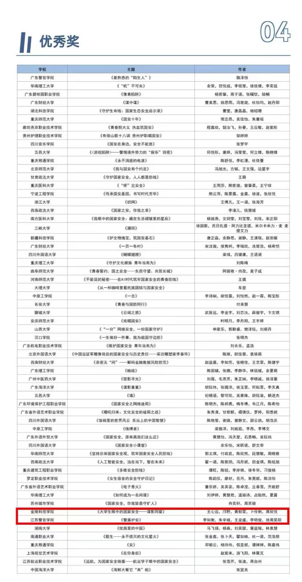 近日,由国家有关主管部门、教育部思想政治工作司、全国学校国家安全教育指导委员会担任指导单位,北京师范大学、广东省国家安全人民防线建设工作办公室为主办单位的第二届全国大学生《我眼中的国家安全》短视频大赛评审结果正式公布。由计算机工程学院张昊副书记指导,学生王心远、邝野、黄郁雯等原创的《大学生眼中的国家安全—谍影同窗》荣获优秀奖。本次活动得到了全国280余所高校师生的热烈响应和积极参与,共征集到参赛视频一千余件。此次获奖充分展现了我院学子关心国家发展、心系民族命运的精神风貌和优秀的艺术创作能力。(审核人:张昊)