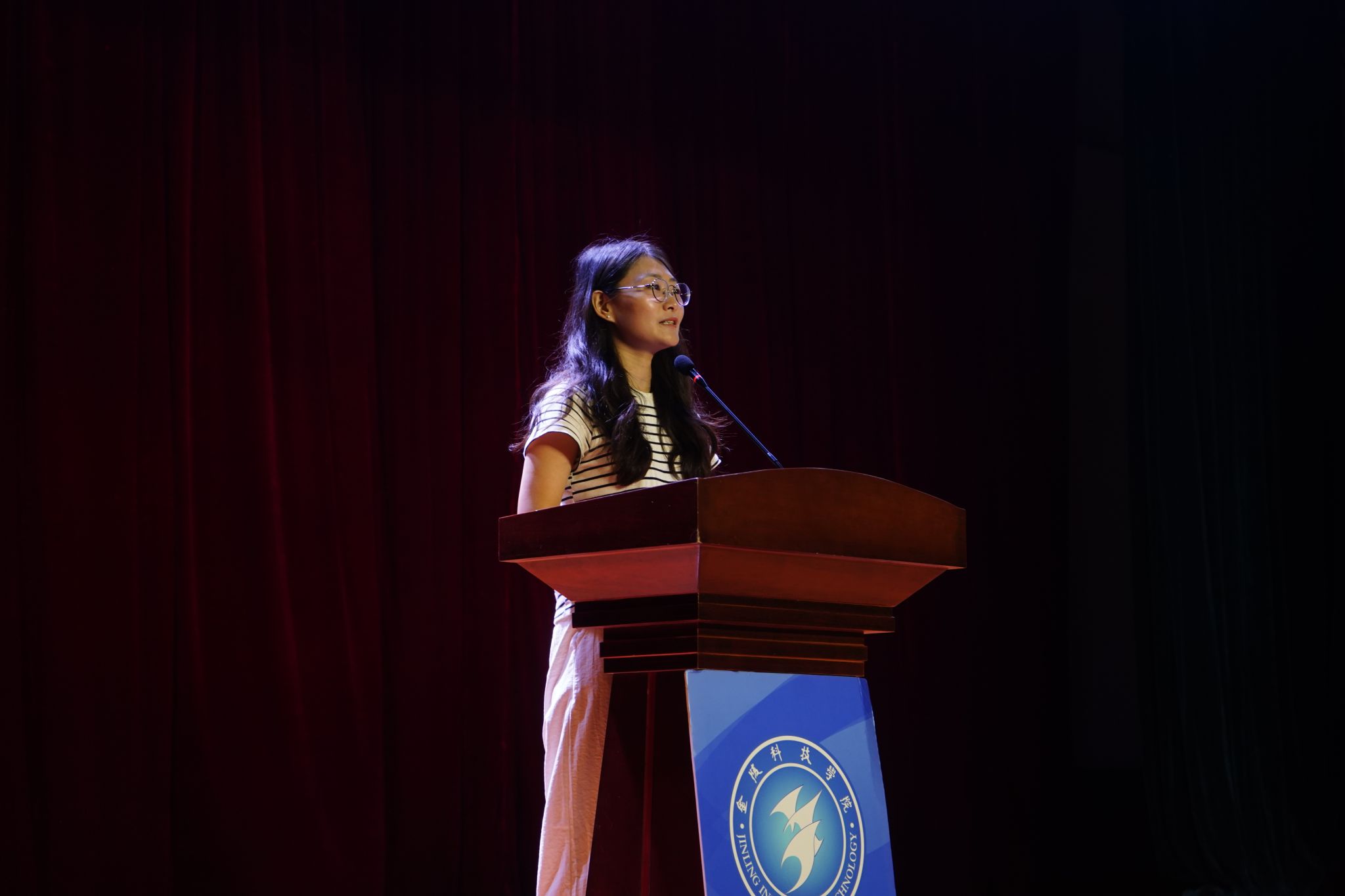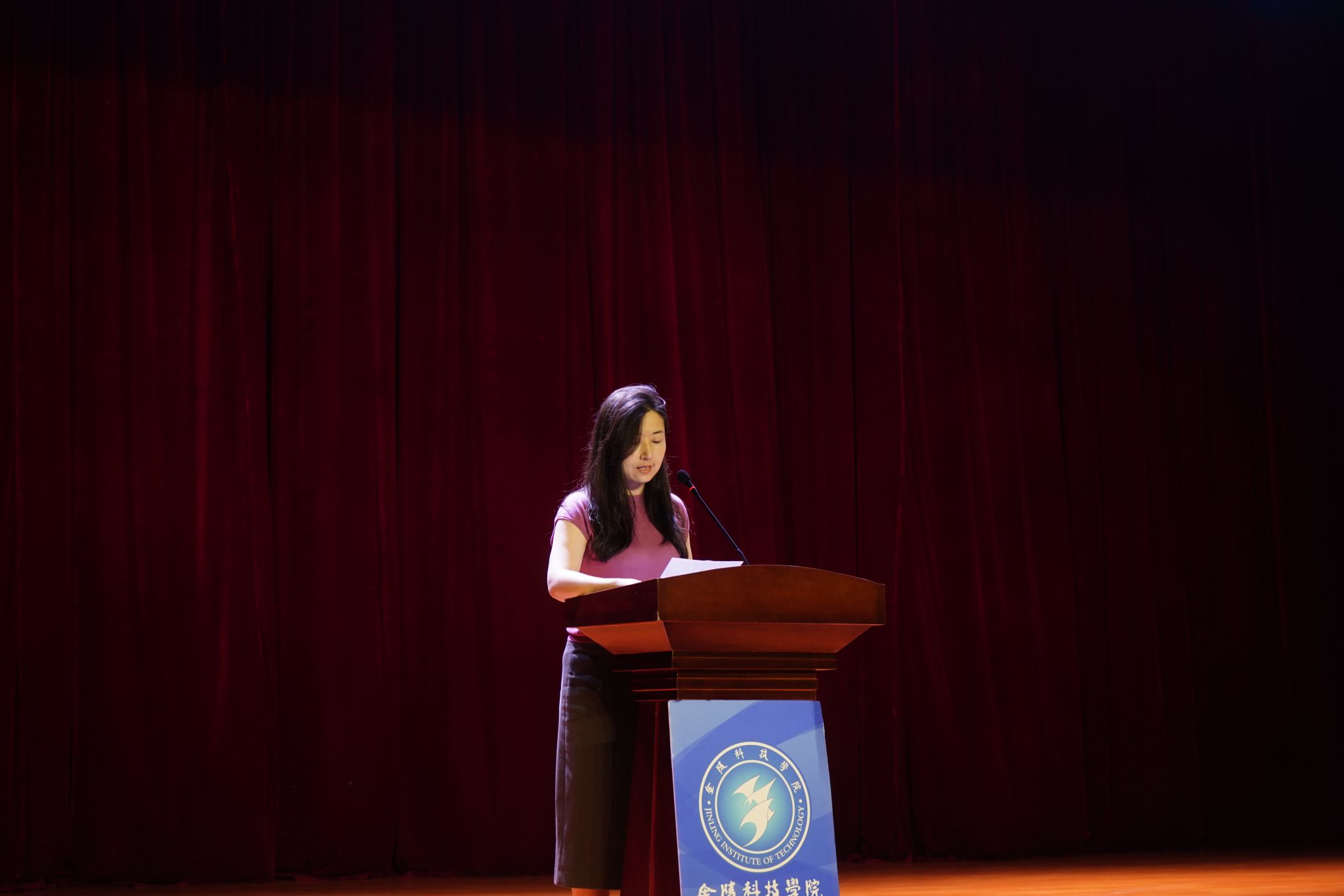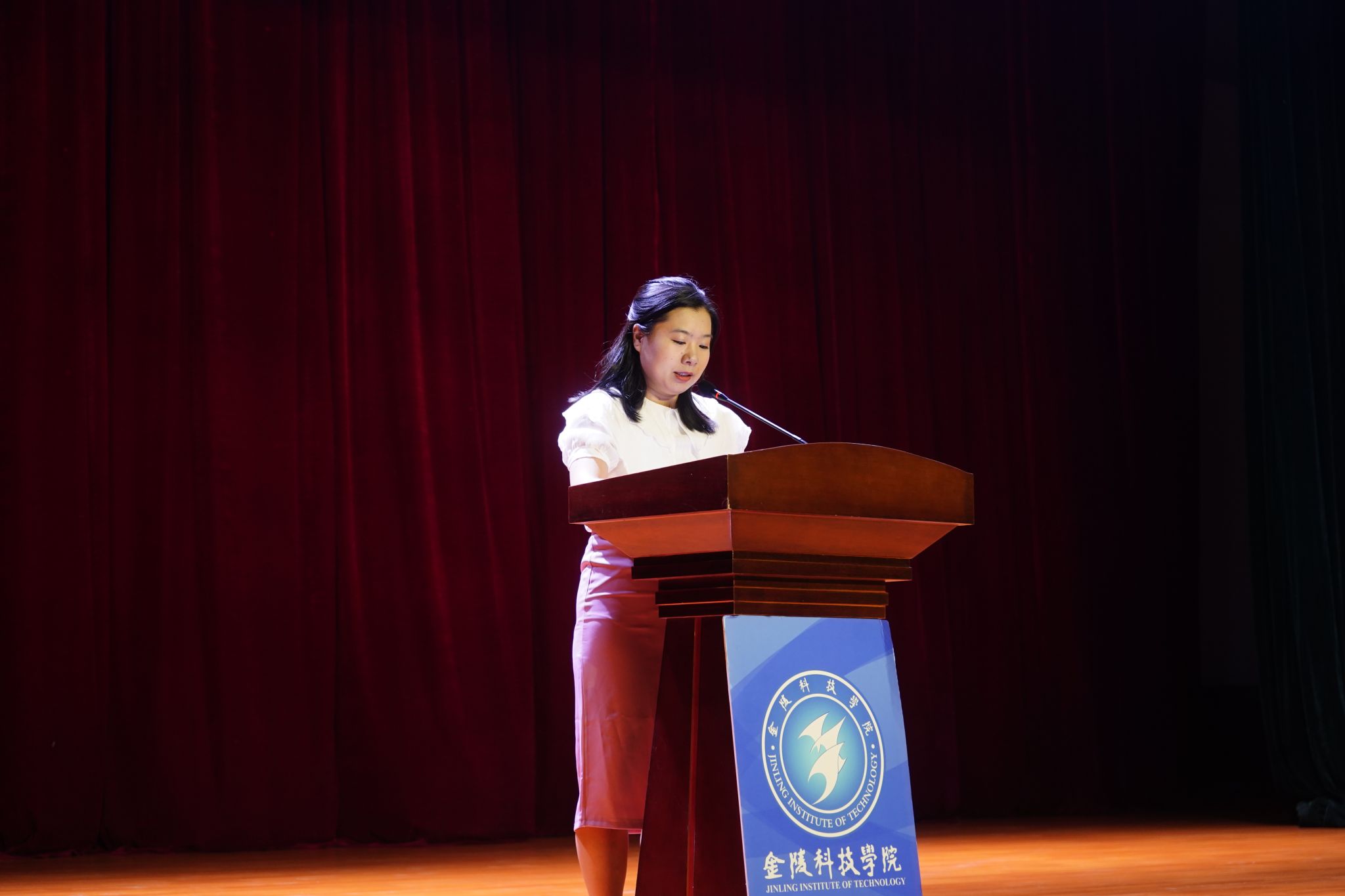 商学院团总支书记徐冰洁老师首先代表商学院团总支学生会向全体新生的到来表示最热烈的欢迎!她向新生同学详细介绍了构成学生第二课堂的四大核心模块。她表示,团员发展、学生会组织、文体活动和志愿服务如同“四根坚实的支柱,共同撑起了我们商学院课堂的绚丽天空”。她说:“大学绝不仅仅是教室和图书馆的两点一线,更应该是挥洒青春、展示才华的广阔舞台。”最后, 徐冰洁老师寄语新生:“大学是人生的新起点,是梦想的新跑道。在这里,一切皆有可能。”她希望新生们既能读万卷书,也能行万里路;既能埋头苦读,也能昂首阔步。勇敢地去去尝试一切新事物!