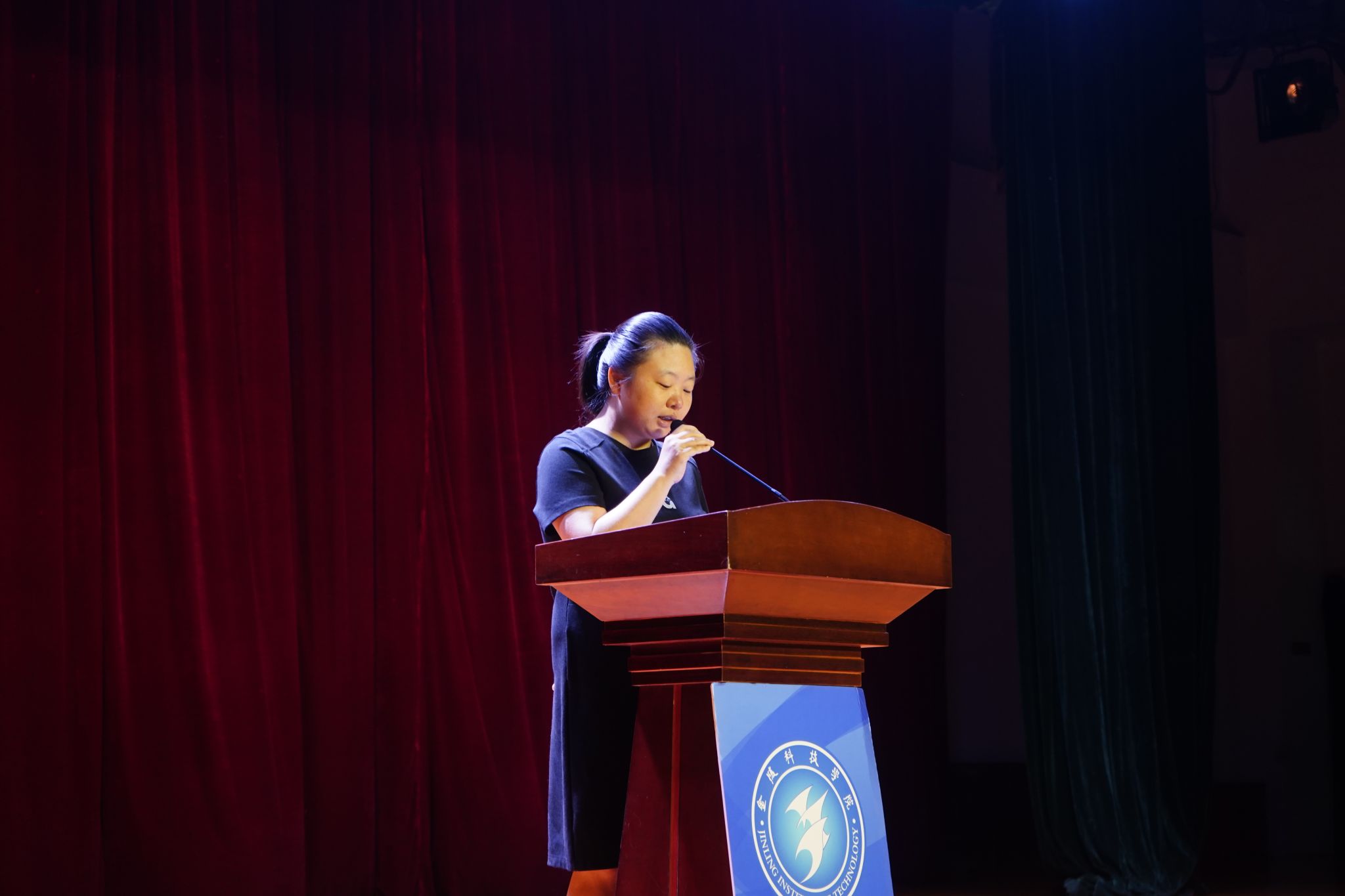 教务科熊杜宁老师就学籍管理、课程学习等关键事项进行了清晰专业的解读。她强调:“大学跟中学完全是不一样的管理模式,‘若要如何,全凭自己’。” 她提醒同学们务必仔细研读《学生手册》,因为其中“事关你们的权益,事关你在学校生活的各项规章制度,非常重要。”