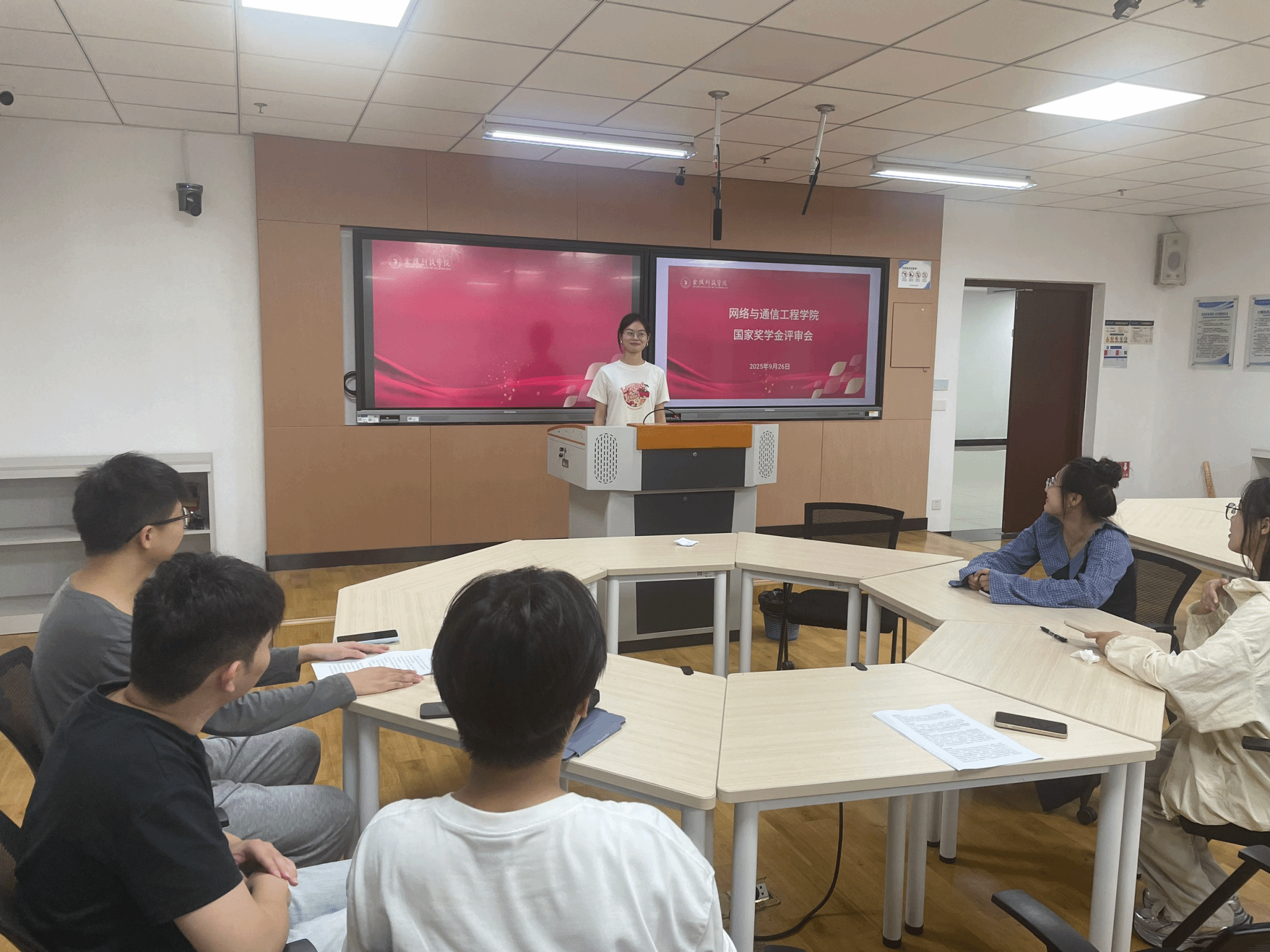为激励学生勤奋学习、努力进取,在德、智、体、美、劳等方面全面发展,9月26日下午,网通学院在4号科技楼604智慧教室召开了2025年国家奖学金评审会,年级辅导员及学生代表参加了本次评审活动。