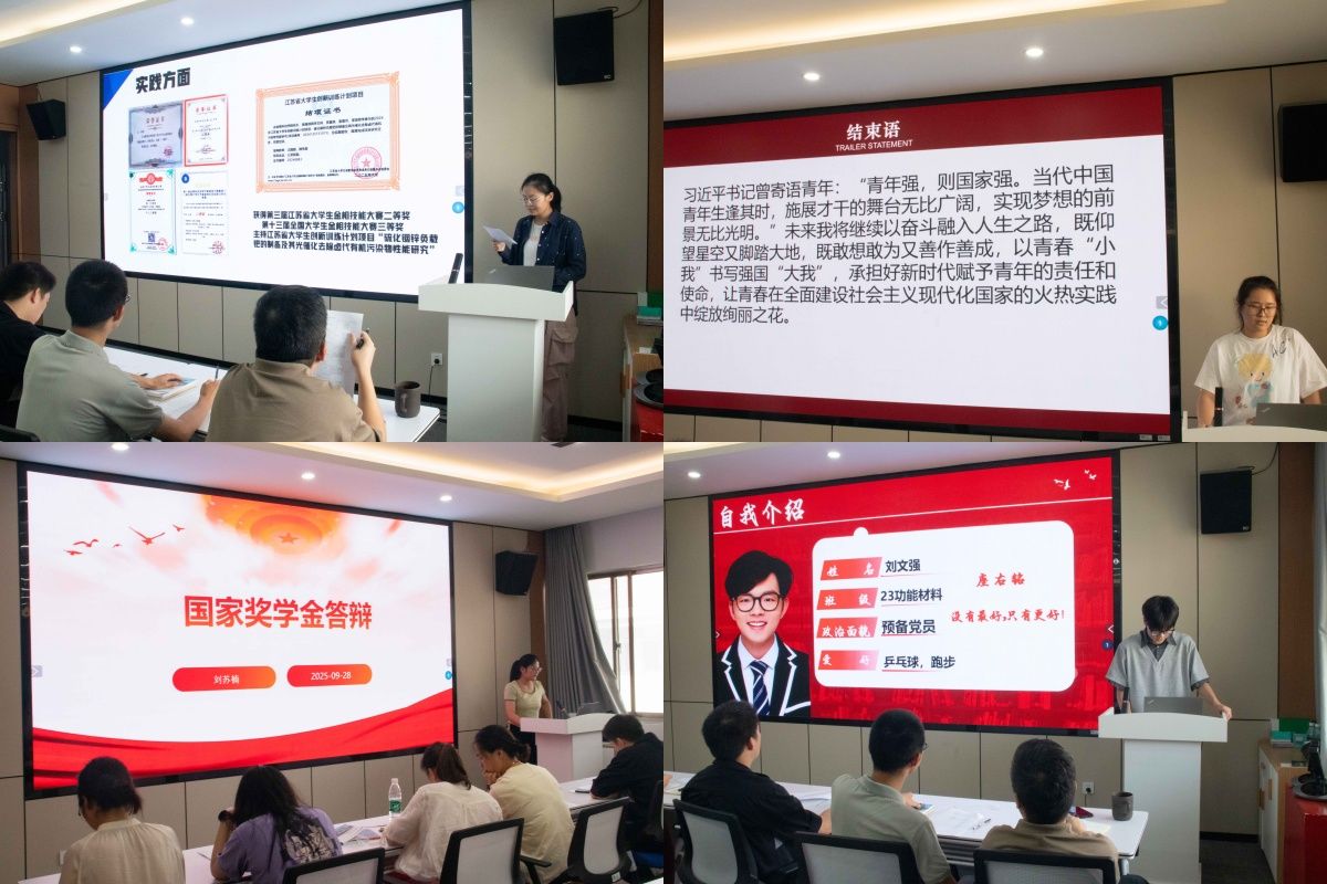 为选拔综合素质突出的优秀学子,材料工程学院于9月28日中午在知行楼A506举行2024-2025学年国家奖学金答辩评选会。学院党委副书记韩铖,班主任代表张成老师、张伟老师、周历老师,全体辅导员及各班学生代表组成评审团。