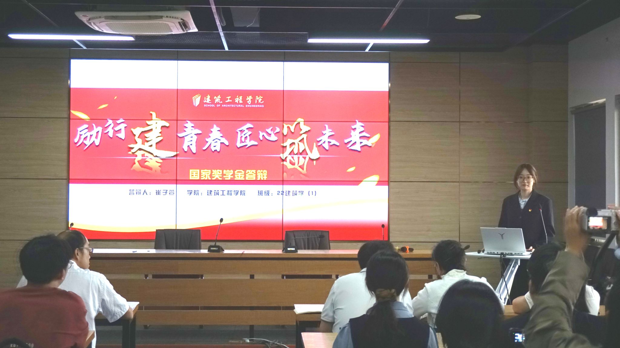 经过前期的个人申请和学院初审,8位学业成绩优异、综合素质突出的候选人站上了答辩的舞台。他们不仅是专业成绩名列前茅的“学霸”,更是科研创新、社会实践、学生工作等多领域全面发展的“多面手”。