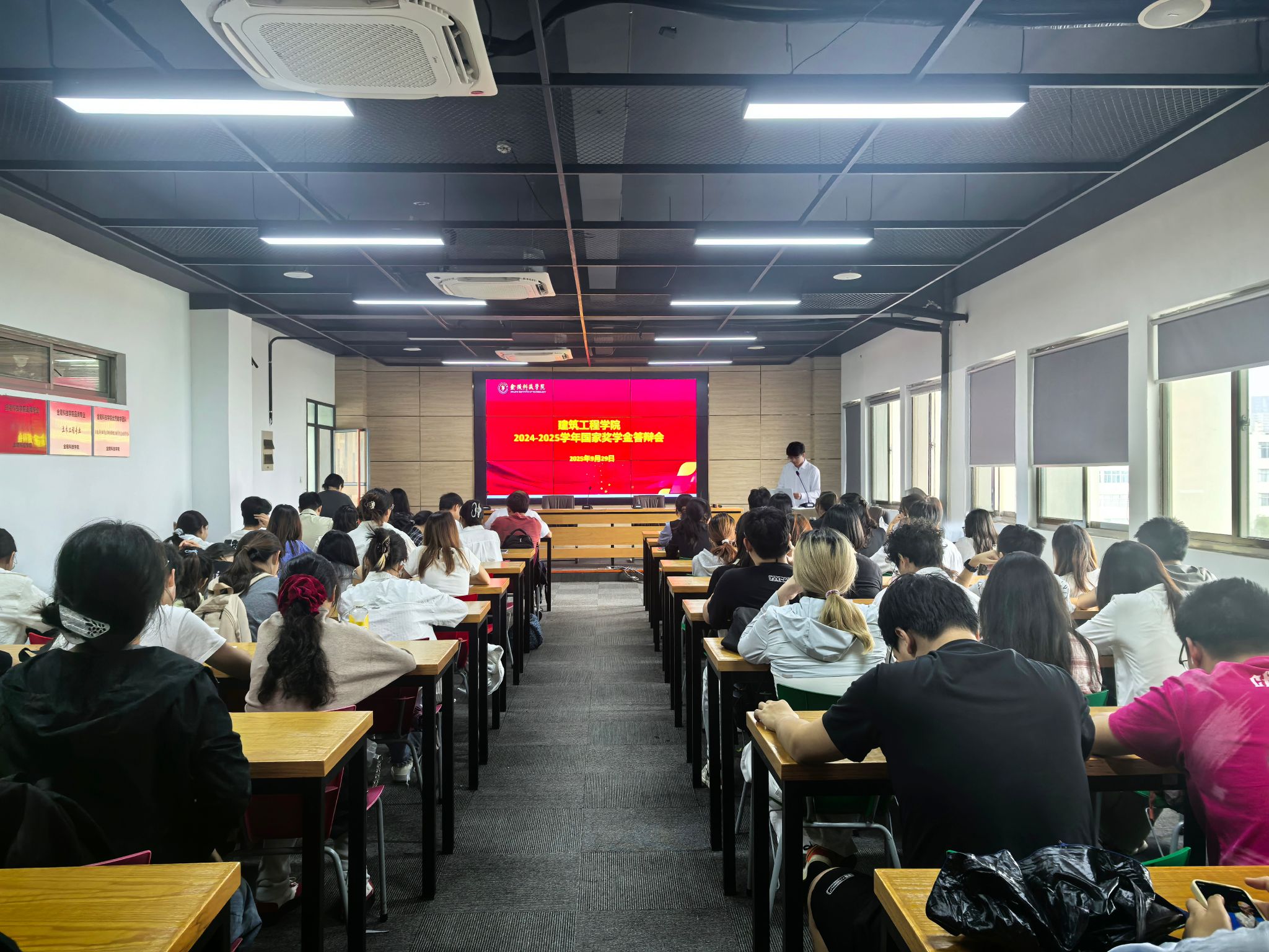 秋高气爽,硕果盈枝。9月29日,建筑工程学院在知行楼B513会议室举行2024-2025学年国家奖学金答辩会。学院党委书记杨如丽,党委副书记郑庆秋,全体辅导员以及部分学生代表参会。