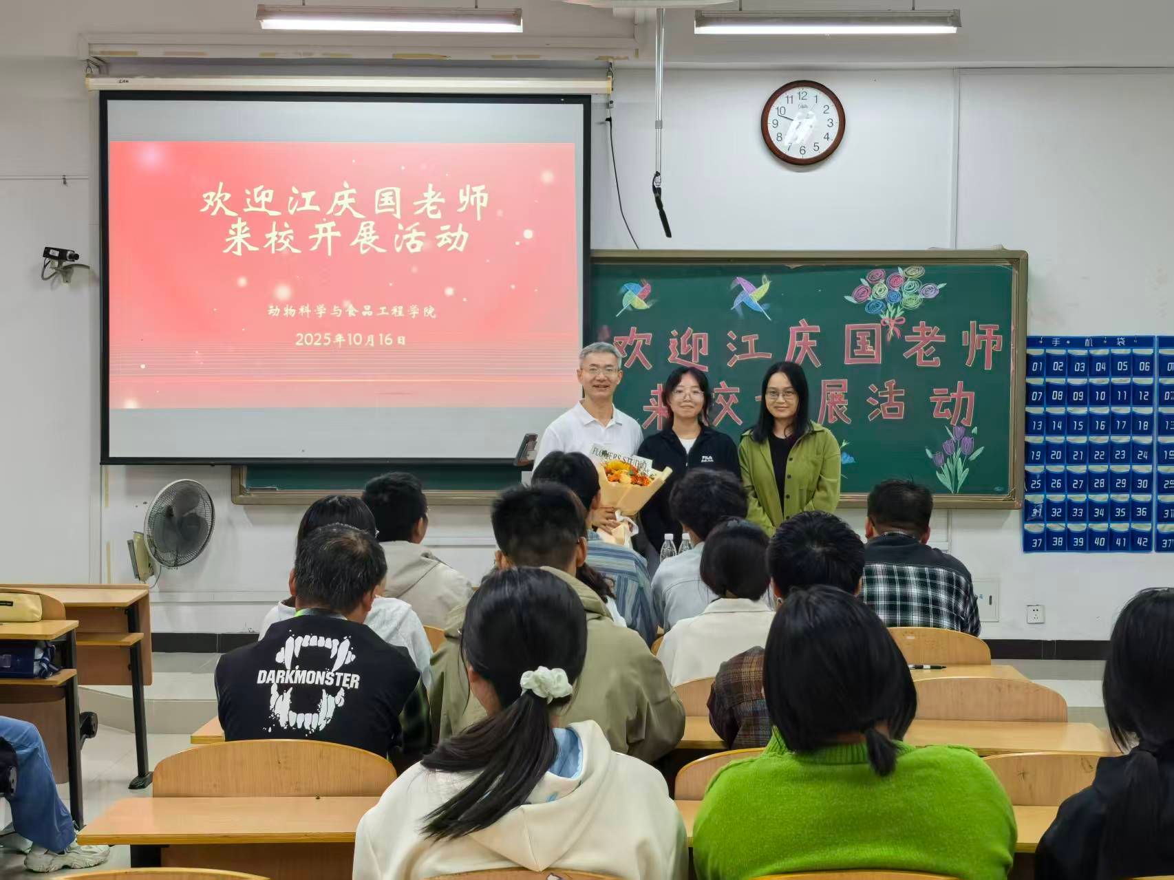 10月16日晚上,动科学院2025级动物医学班在图教楼B101召开班会。企业班主任、大连三仪集团副董事长江庆国、学院学工办主任、2025级辅导员吴旖旎、2025级动物医学班主任王楠楠和45名同学参加班会。