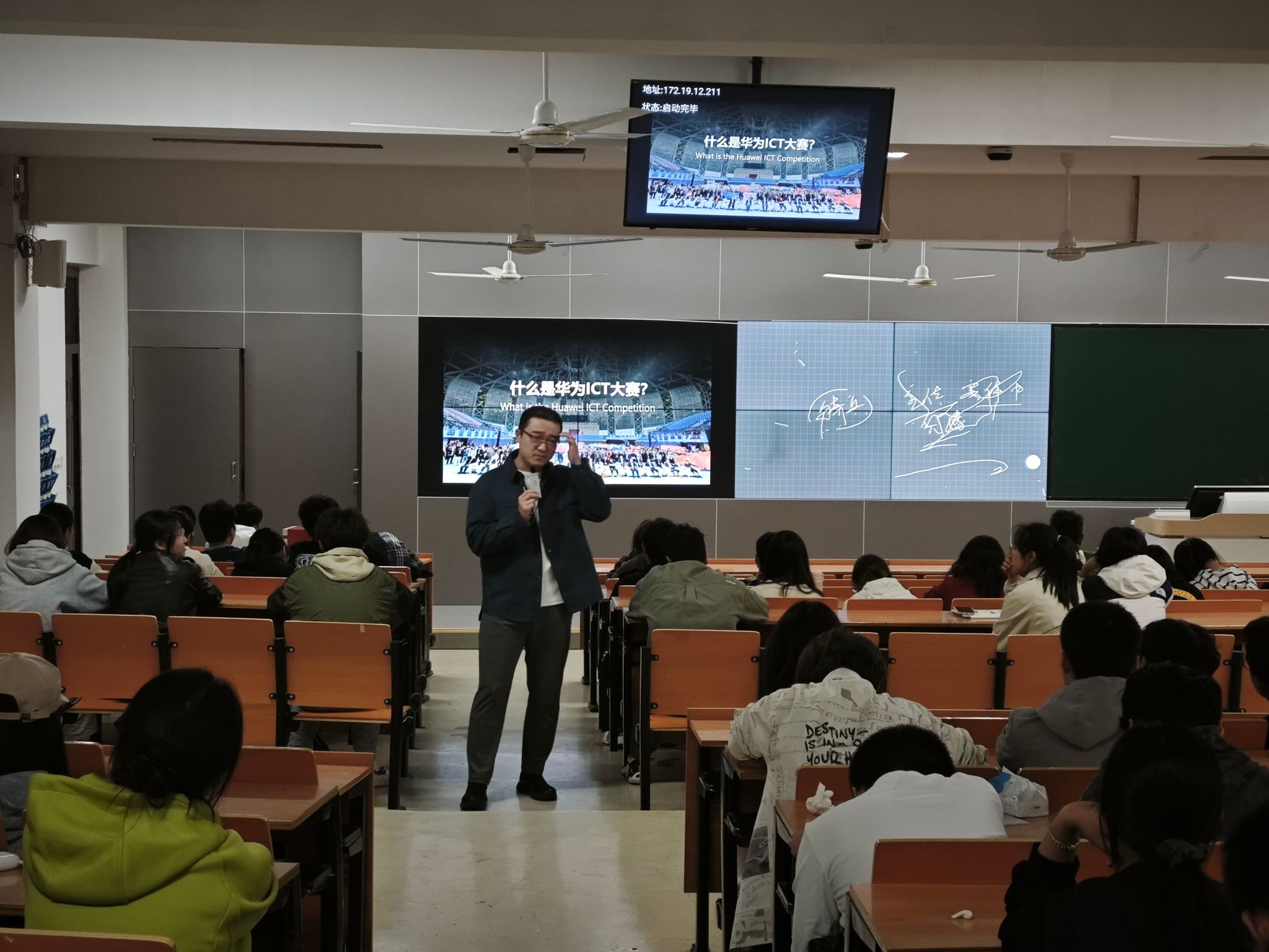 为帮助2025级新生深入了解专业前沿、明确学习目标,10月19日晚,网络安全学院于教学楼2202教室举办了第十届华为ICT大赛与第十五届“新华三杯”全国大学生数字技术大赛的赛事联合宣讲会。本次活动旨在为新生搭建专业认知平台,激发学生参赛热情,提前规划大学生涯。