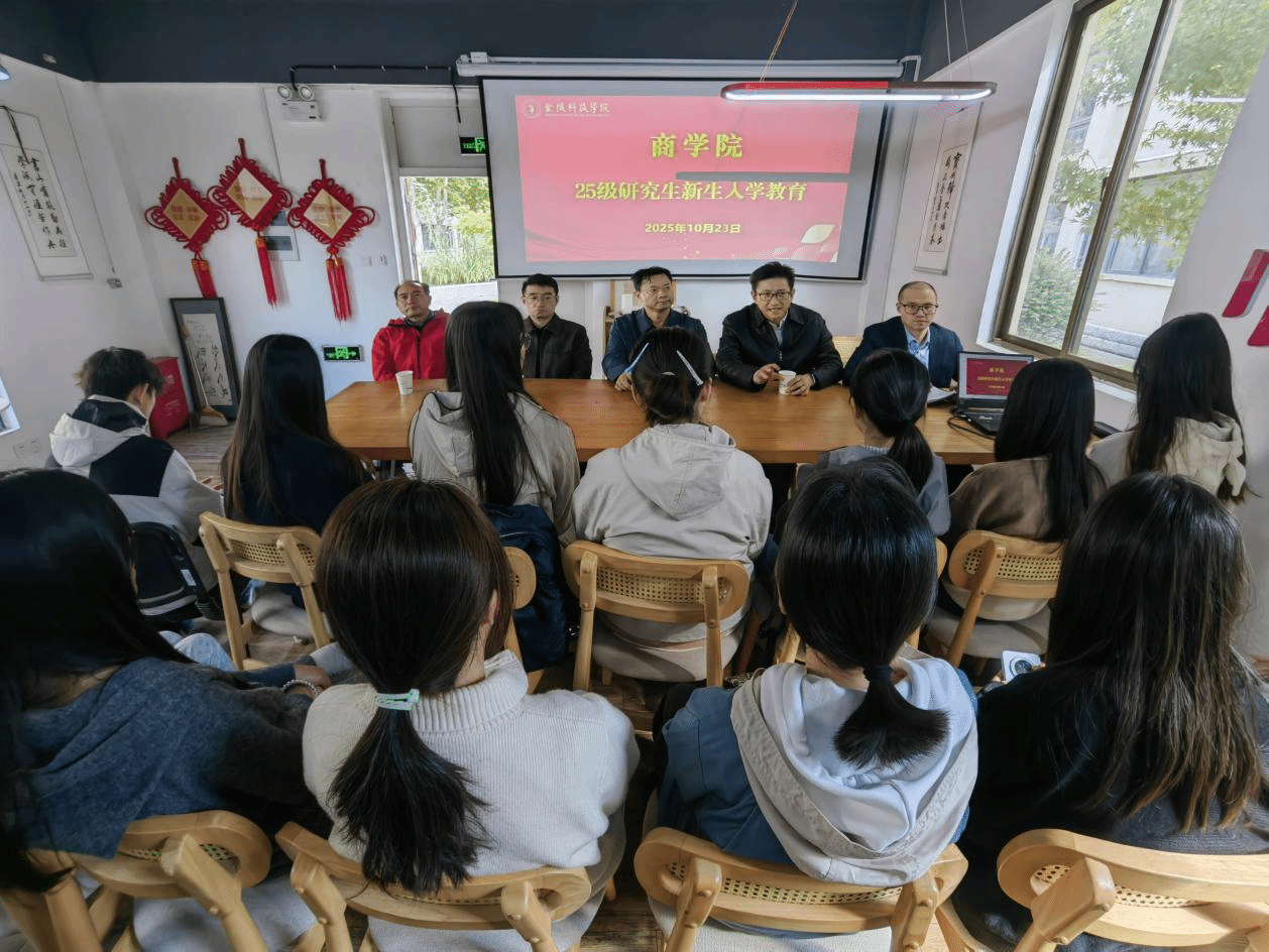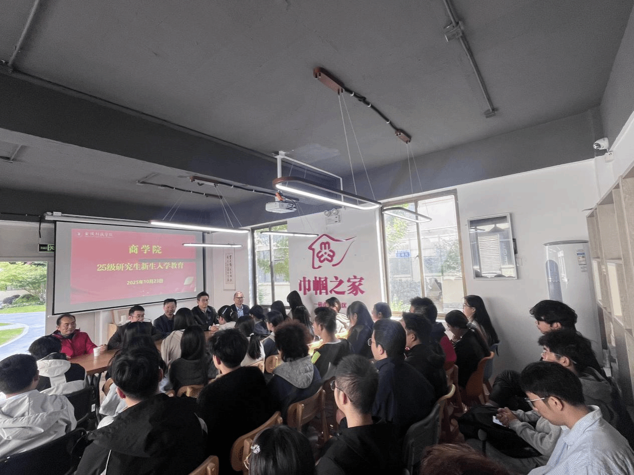 10月23日中午12:40,商学院在北区04栋一站式学生社区举行25级会计专硕与金融专硕新生入学教育大会。学院党委书记徐立岗、院长刘磊等领导及辅导员沈洁出席,与全体新生共启研究生生涯导航之旅。