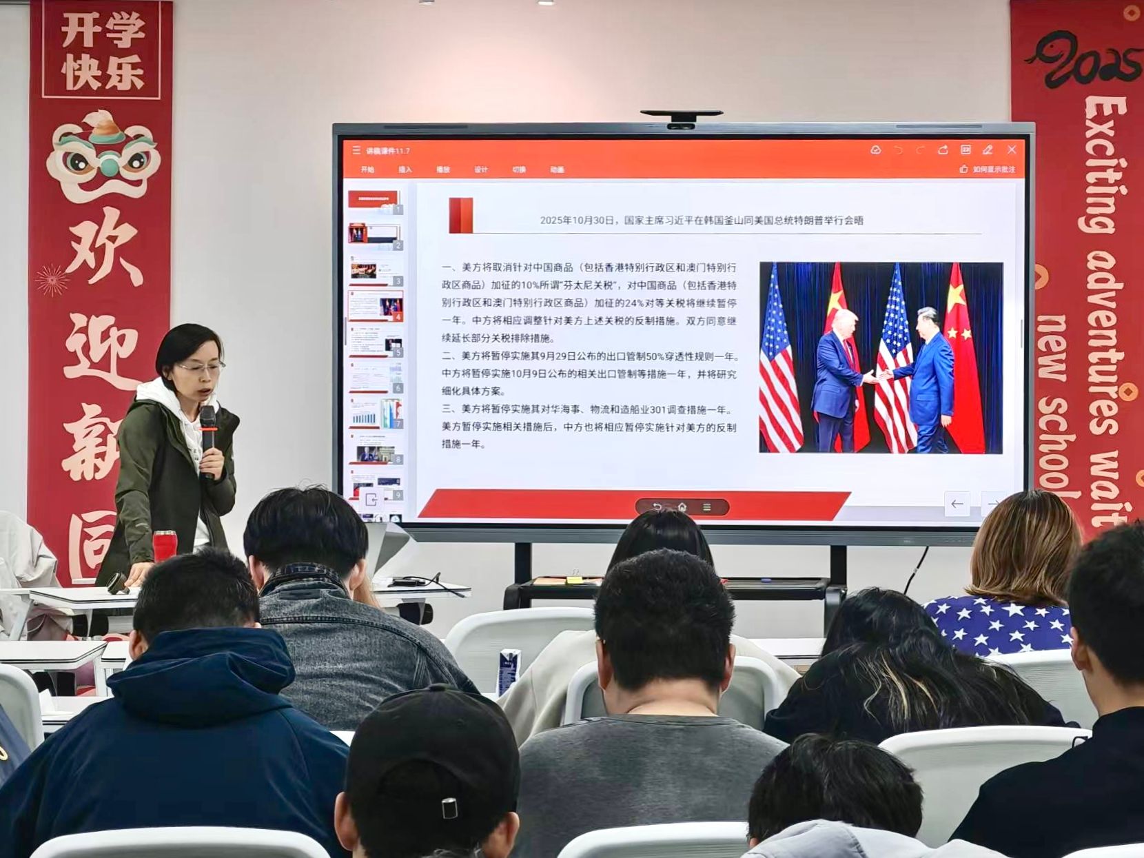 形势与政策课是高校落实立德树人根本任务、强化思想引领的重要阵地。本次讲座聚焦历史与现实的贯通,注重中外视野的融合,有助于引导学生树立正确的历史观、民族观与国家观,在跨文化交流中坚定文化自信,勇担时代使命。