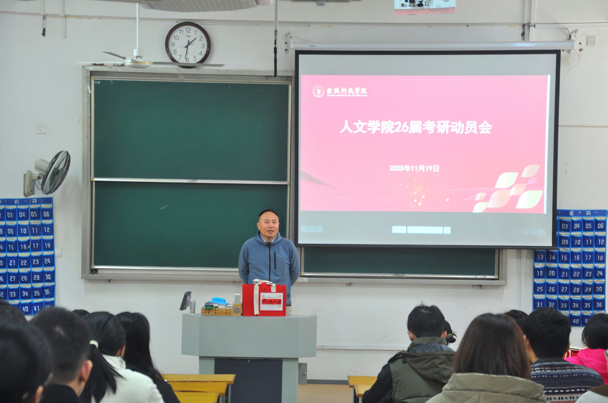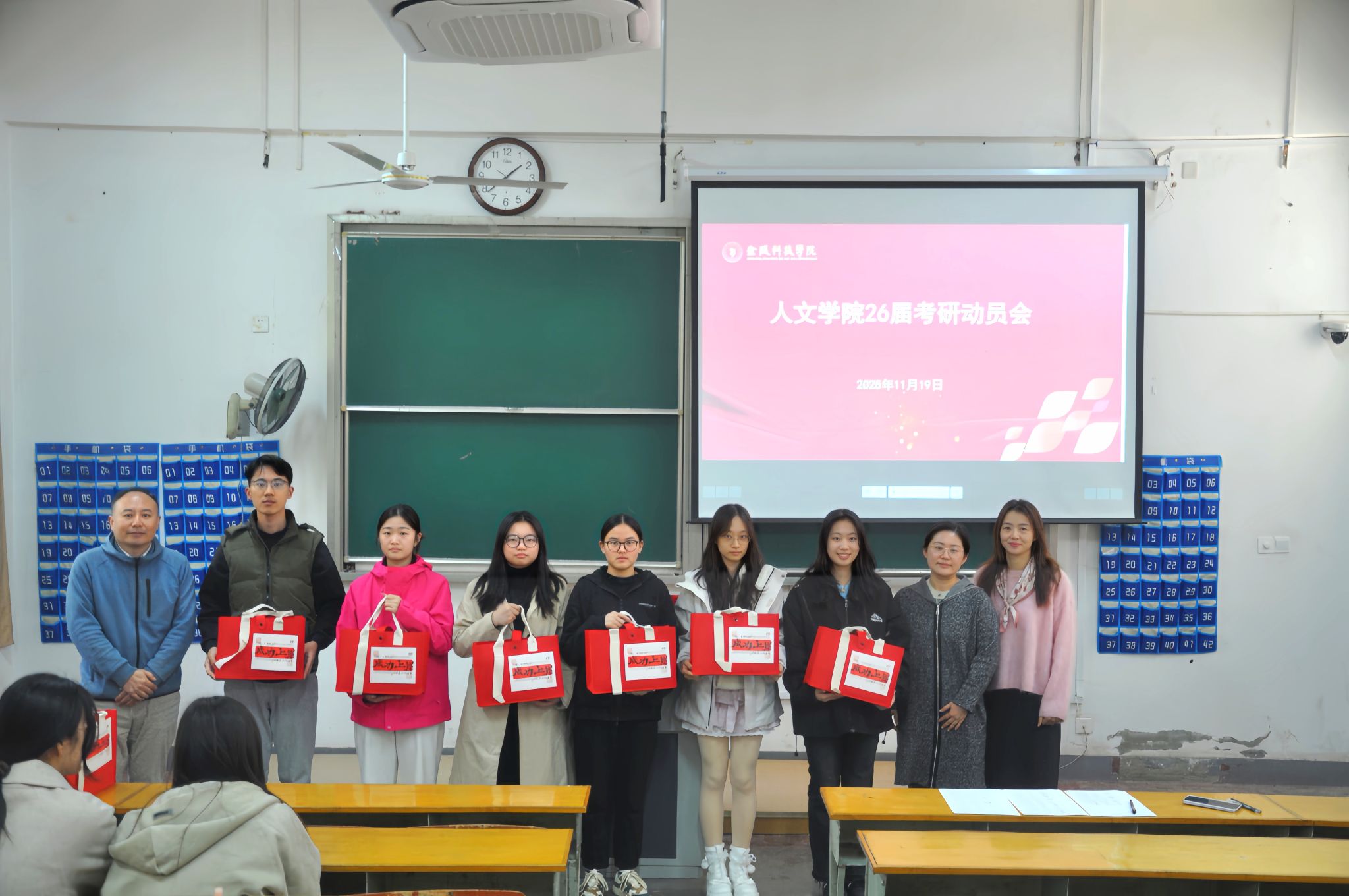 活动中,张维亚院长结合文科专业备考特点,为同学们提出针对性建议。他强调,文科学习需注重记忆与积累,同时合理安排作息,保持身心健康。此外,张院长还鼓励同学们主动与老师交流,合理协调考研复习与期末课程进度,做到统筹兼顾。董宇书记进一步强调了与老师沟通的重要性,并鼓励同学们在最后的冲刺阶段保持节奏、坚定信念。活动最后,学院老师为每位考研学子送上精心准备的暖心礼包,表达学院对同学们的深切关怀与美好祝愿。