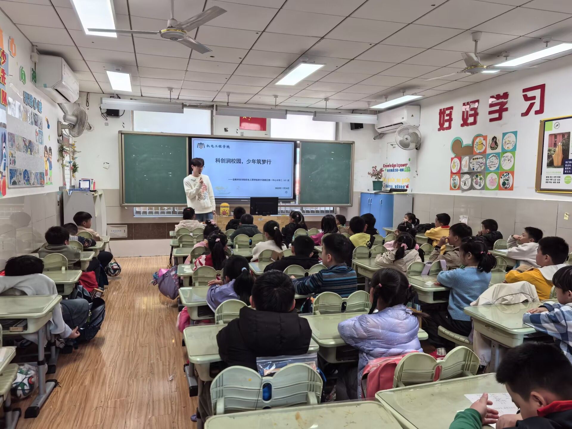 为点燃小学生科学探索热情,播撒科技创新种子。11月26日,机电工程学院学工办主任纪晓明带领凌云科创团队成员走进鼓楼区第一中心小学,开展“科技进校园”系列活动之科创润校园,少年筑梦行活动。学生科创团队负责人王赛雨携消防巡检机器人、竞速机器人、智能侦察机器人车演示、讲解,为师生带来一场兼具趣味与知识的科技盛宴。