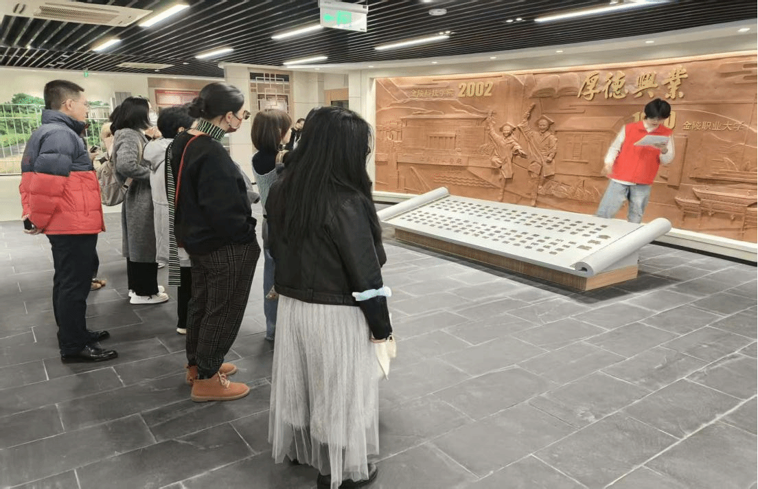 校友们在珠宝系在校学生的引领下,首先参观了校史馆。在讲解员的引导下,大家沿着学校历史发展的脉络徐徐前行。从初创时期的艰辛到如今跨越式发展的成就,一幅幅图片、一件件实物、一段段影像,生动再现了学校数十年来砥砺前行的奋斗历程。重温求学岁月,感慨母校日新月异的变化与沉淀深厚的底蕴。