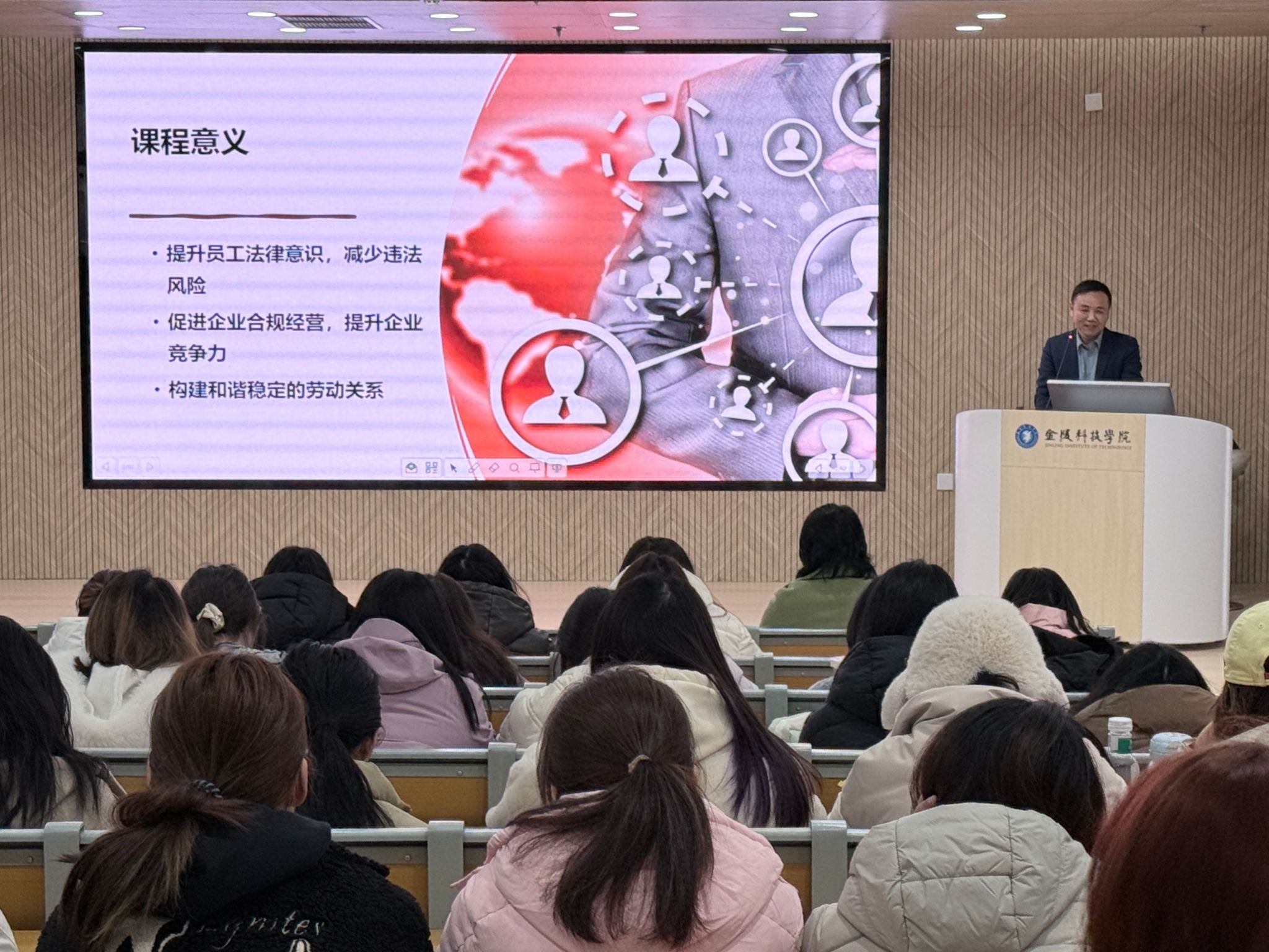 谢英刚律师结合多年执业经验,围绕四大核心主题展开讲解:一是职场须知的法律行为准则。他通过案例分析,详细解读了《劳动合同法》中关于薪酬福利、解除合同的关键条款,提醒学生在未来求职中需警惕“口头承诺”“口头承诺”等风险,建议留存书面证据以维护自身权益。二是人格权保护:守护个体尊严的法律防线。他结合校园生活实例,如“口头承诺”“未经允许使用他人照片”等场景,明确指出“人格权不受侵犯,即使在熟人社交中也需严守法律底线”,引导学生树立尊重他人权利与自我保护并重的意识。三是网络空间的法律责任。围绕“网络不是法外之地”,谢律师剖析了网络谣言、网络暴力、知识产权侵权等行为的法律后果。他特别强调,在社交媒体时代,转发、评论信息需尽到核实义务,“看似微小的点击行为,可能因侵犯他人权益或违反《网络安全法》承担民事赔偿甚至刑事责任”,呼吁学生理性发声,远离网络违法犯罪。四是商业秘密保护。针对英语专业学生未来可能涉足的外贸、跨境电商等领域,谢律师详解了商业秘密的定义与保护范围,包括客户信息、技术数据、经营策略等未公开信息的保密义务。