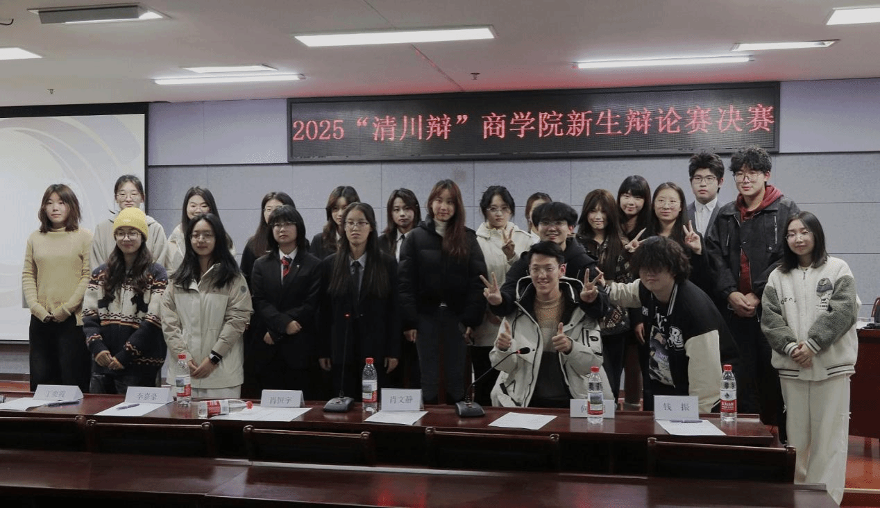 为进一步深化“立德树人”根本任务,培养青年学子辩证思维能力,丰富学生校园文化生活,营造和谐向上校园文化氛围,12月11日晚,2025“清川辩”商学院新生辩论赛决赛于科技楼3-313圆满落幕。活动特邀商学院团总支书记徐冰洁、辅导员张晨,以及学生会主席团成员、学习部部长等学生骨干。活动隆重邀请到六名来自校辩论队及各学院的“辩手”担任评委。