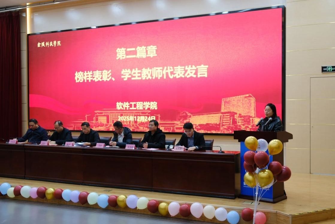 为倡导优良学风,营造良好学习氛围,12月24日下午,软件学院隆重举行2025年度学风建设表彰大会。软件学院党委书记戴军、院长曾岳、党委副书记徐斌、副院长徐永华和副院长赵海峰等领导出席,学院获奖教师和本科生、研究生代表共同参与。